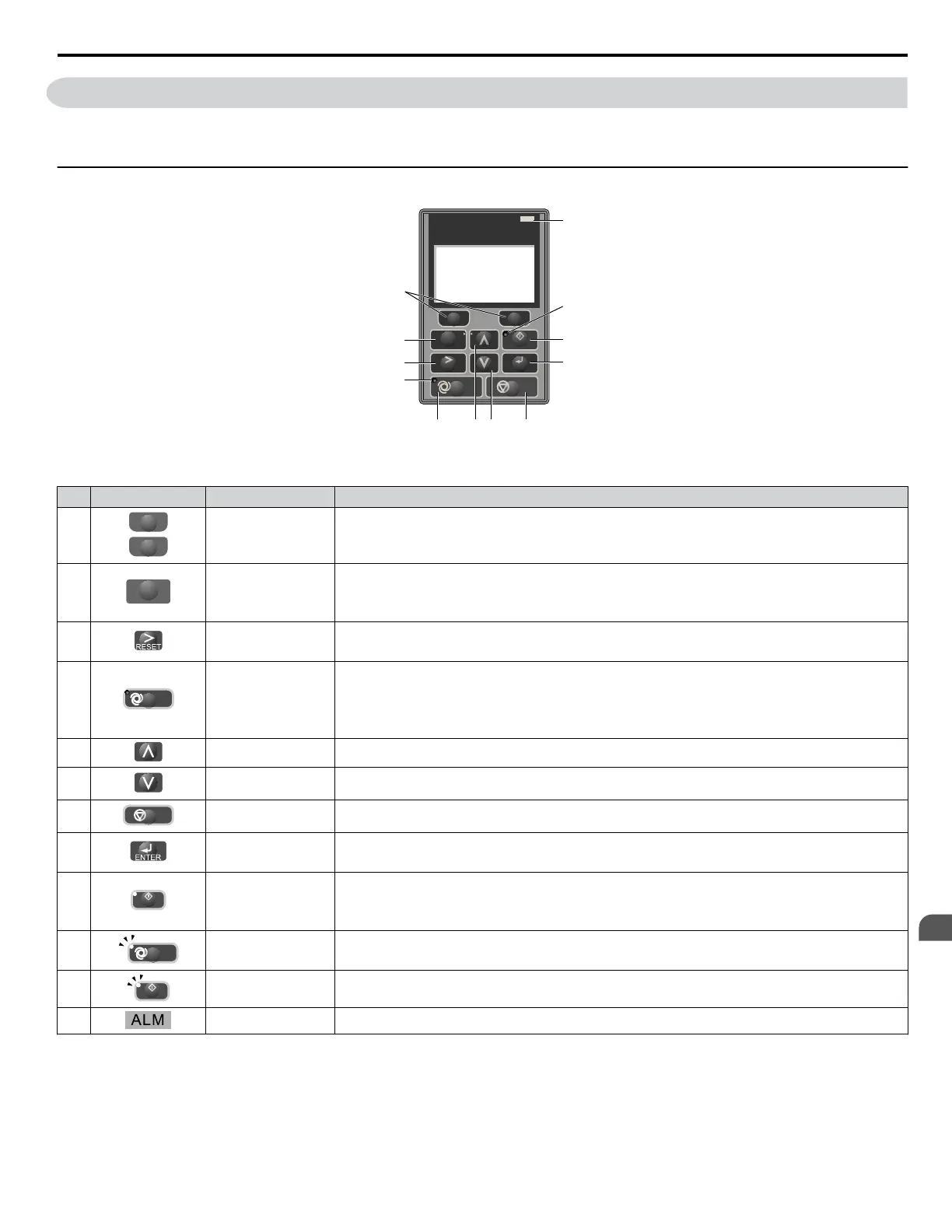 OFF Key Follows the stopping method set in b1-03 to stop drive operation.