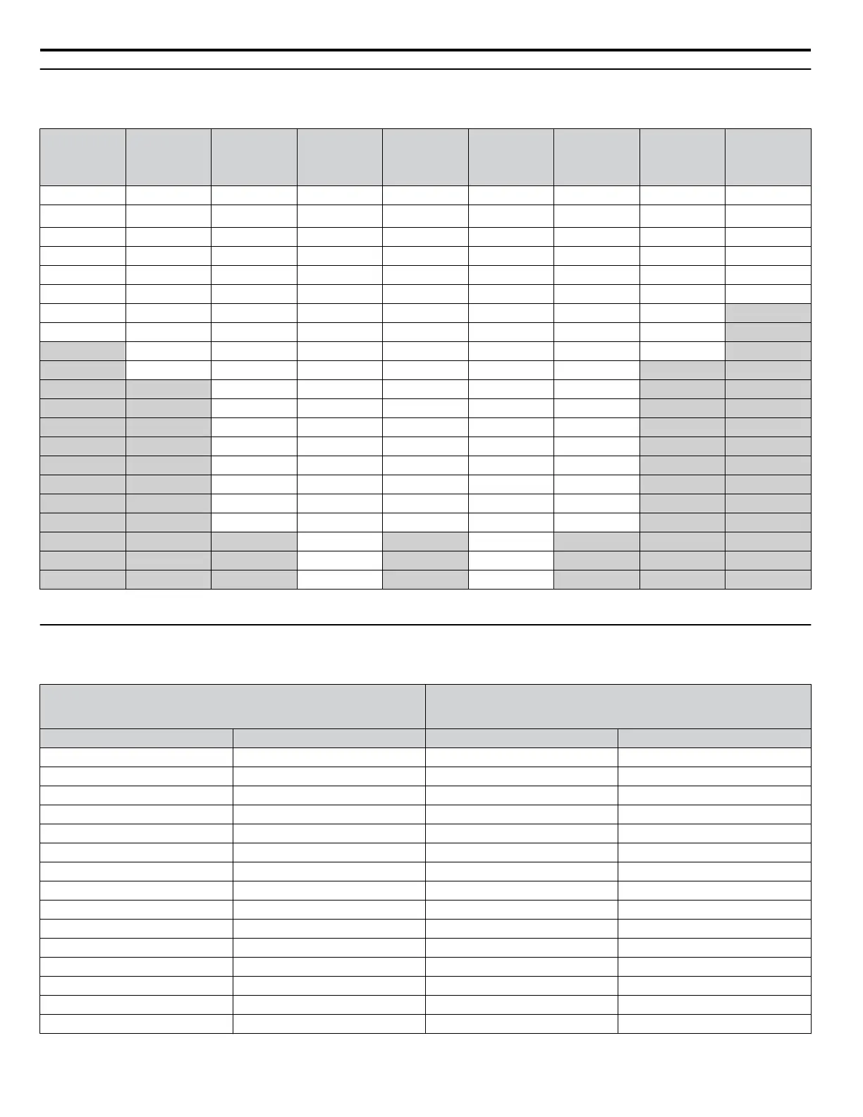 The following table shows which parameters are shown on the Pump Quick Setting menu depending on the A1-06 selection: