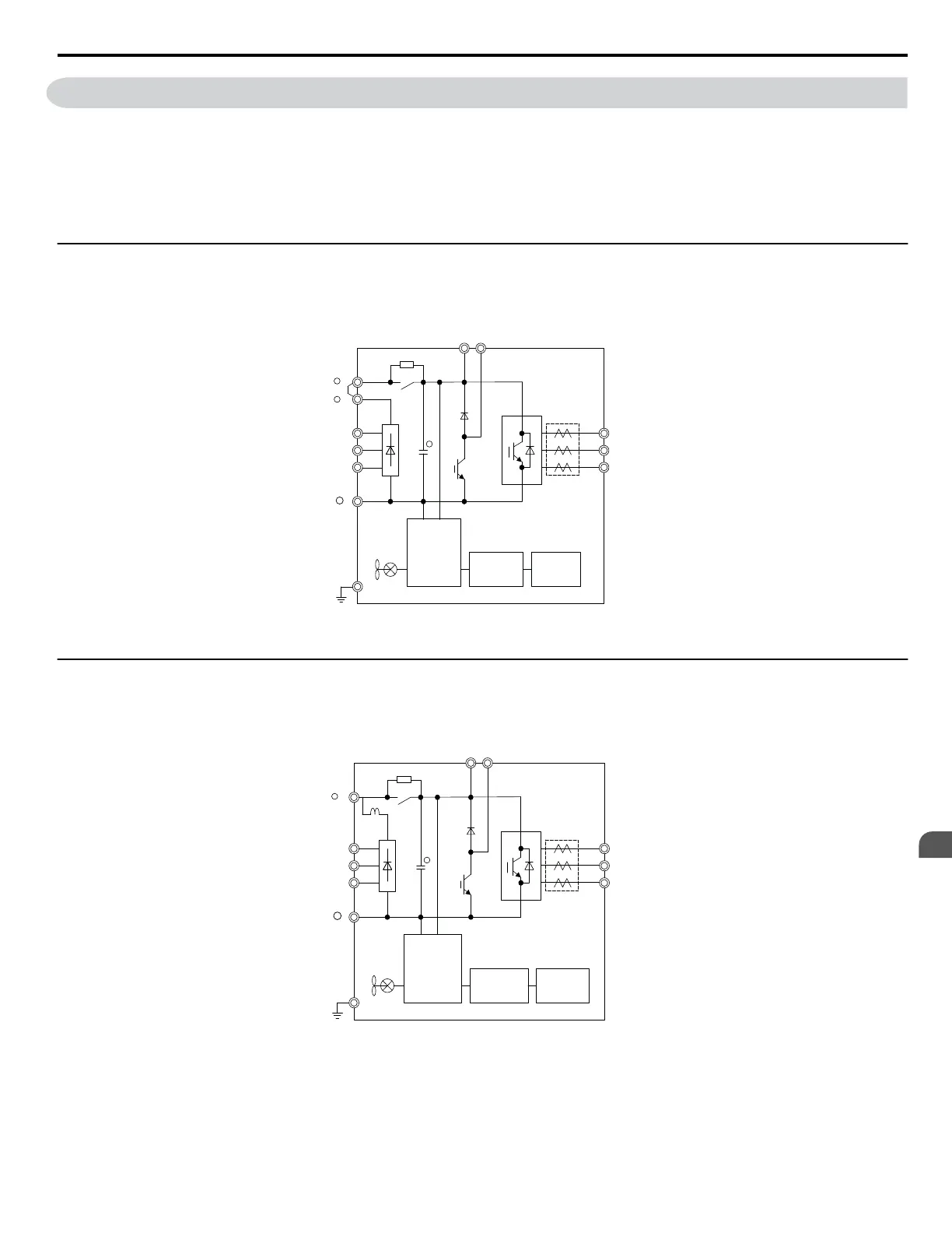 Refer to diagrams in this section when wiring the main circuit of the drive. Connections may vary based on drive capacity.