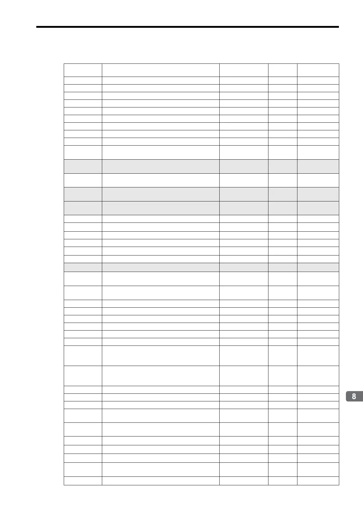No. Name Setting Unit