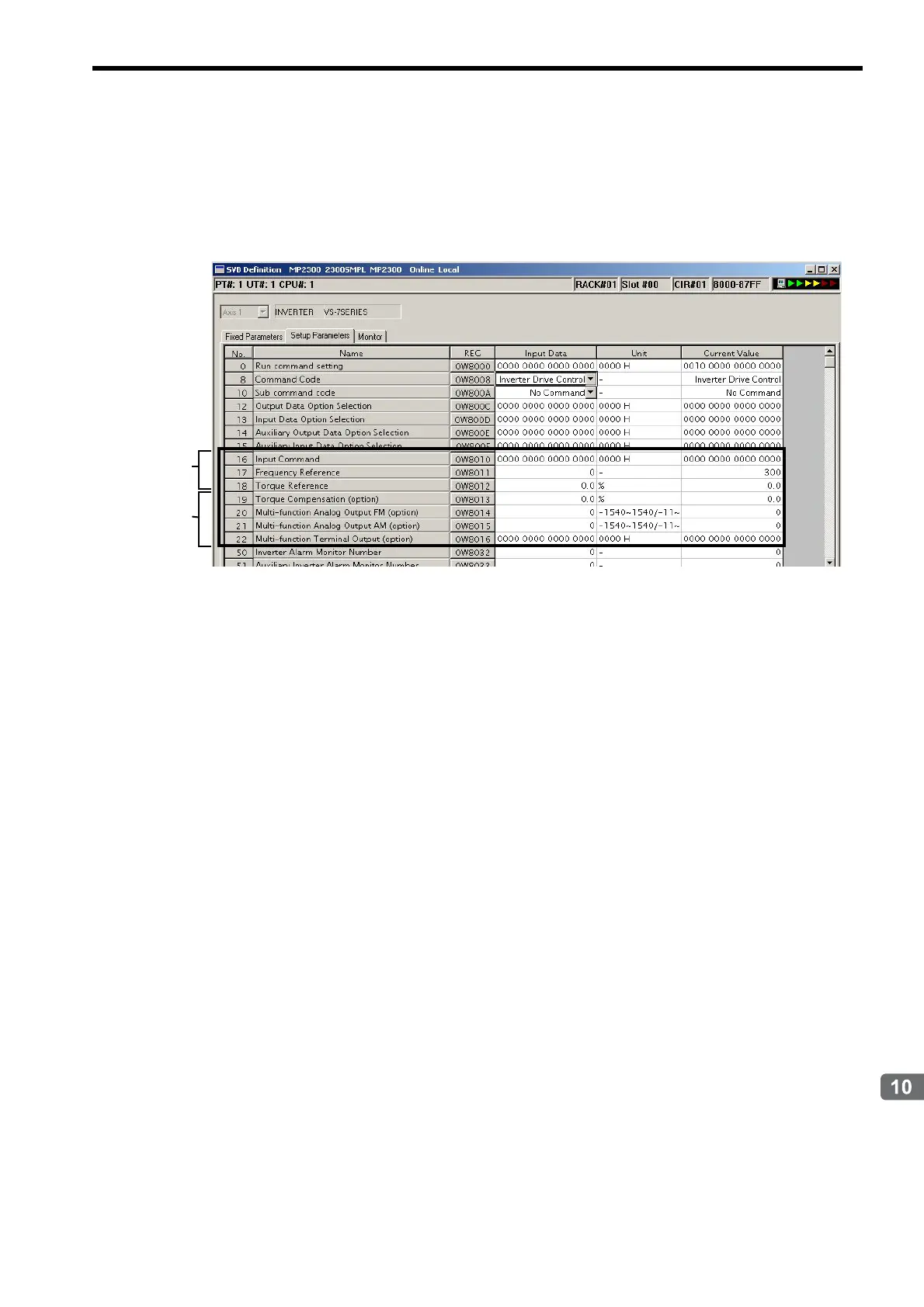Output Data for Inverter Drive Control (Setup Parameters Tab Page)