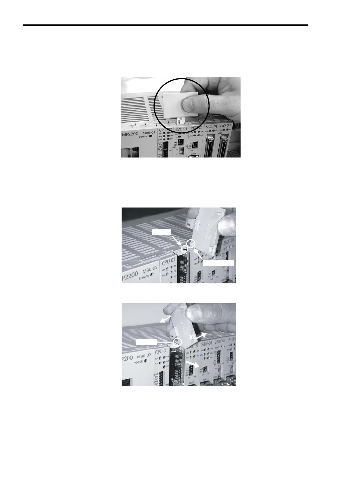 Pull the top of the panel of the SVB-01 Module towards you to remove it. A notch on the SVB-01 Module will be