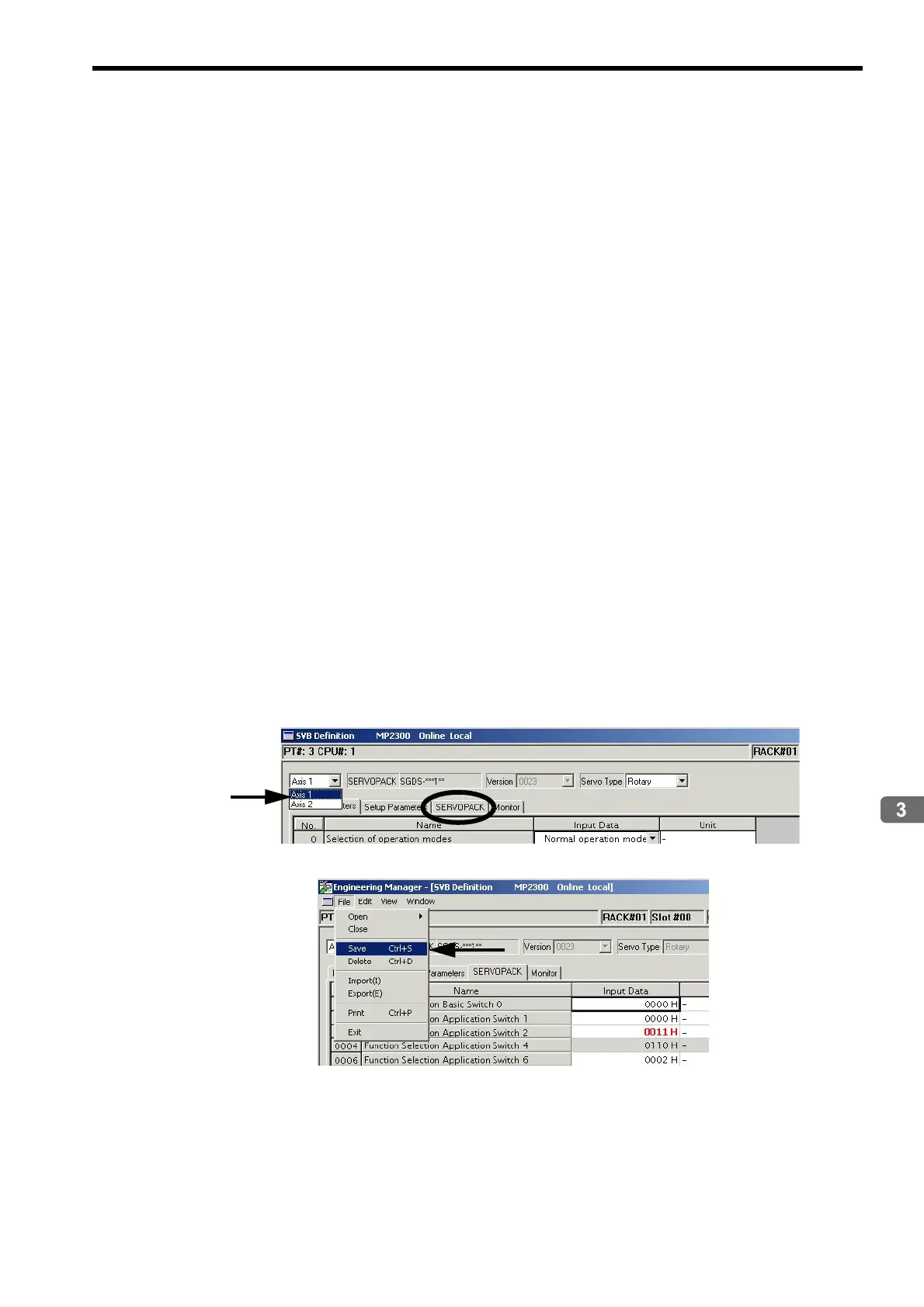 b) Click File - Save to write the SERVOPACK settings to the SERVOPACK.