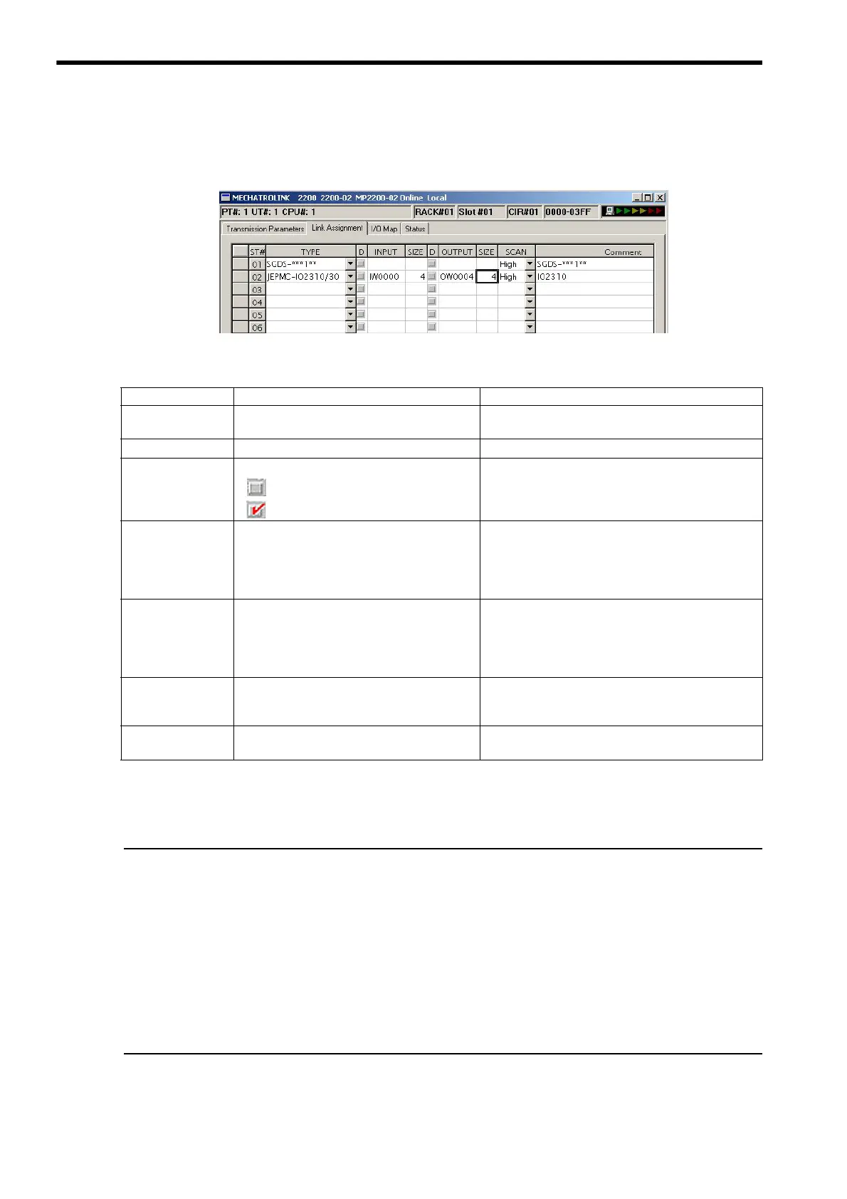 The items shown on the Link Assignment Tab are as follows. You can change the settings or delete the data station by