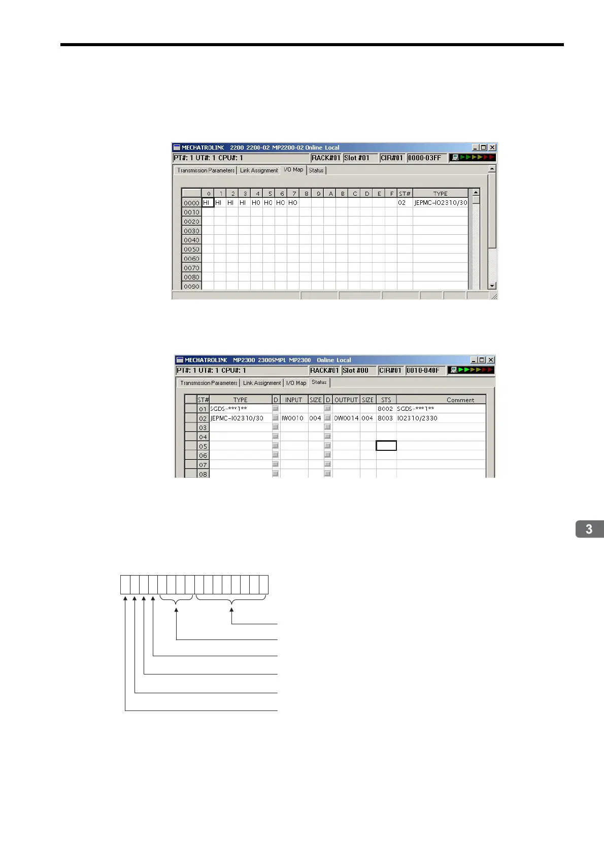 In online mode MECHATROLINK transmission status information is displayed in hexadecimal.