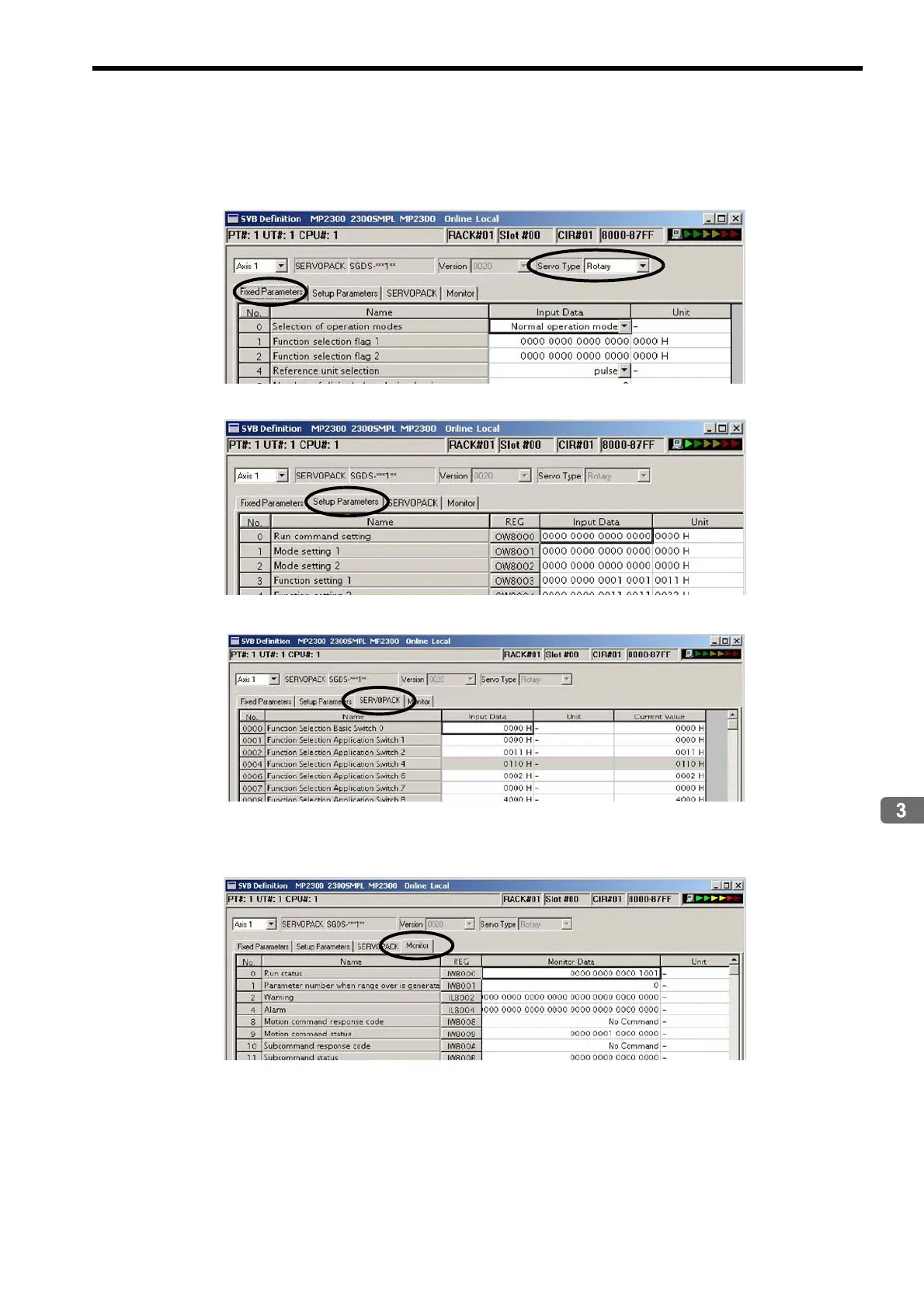 Click the Fixed Parameters, Set Up Parameters, or Monitor tab to display the desired page.