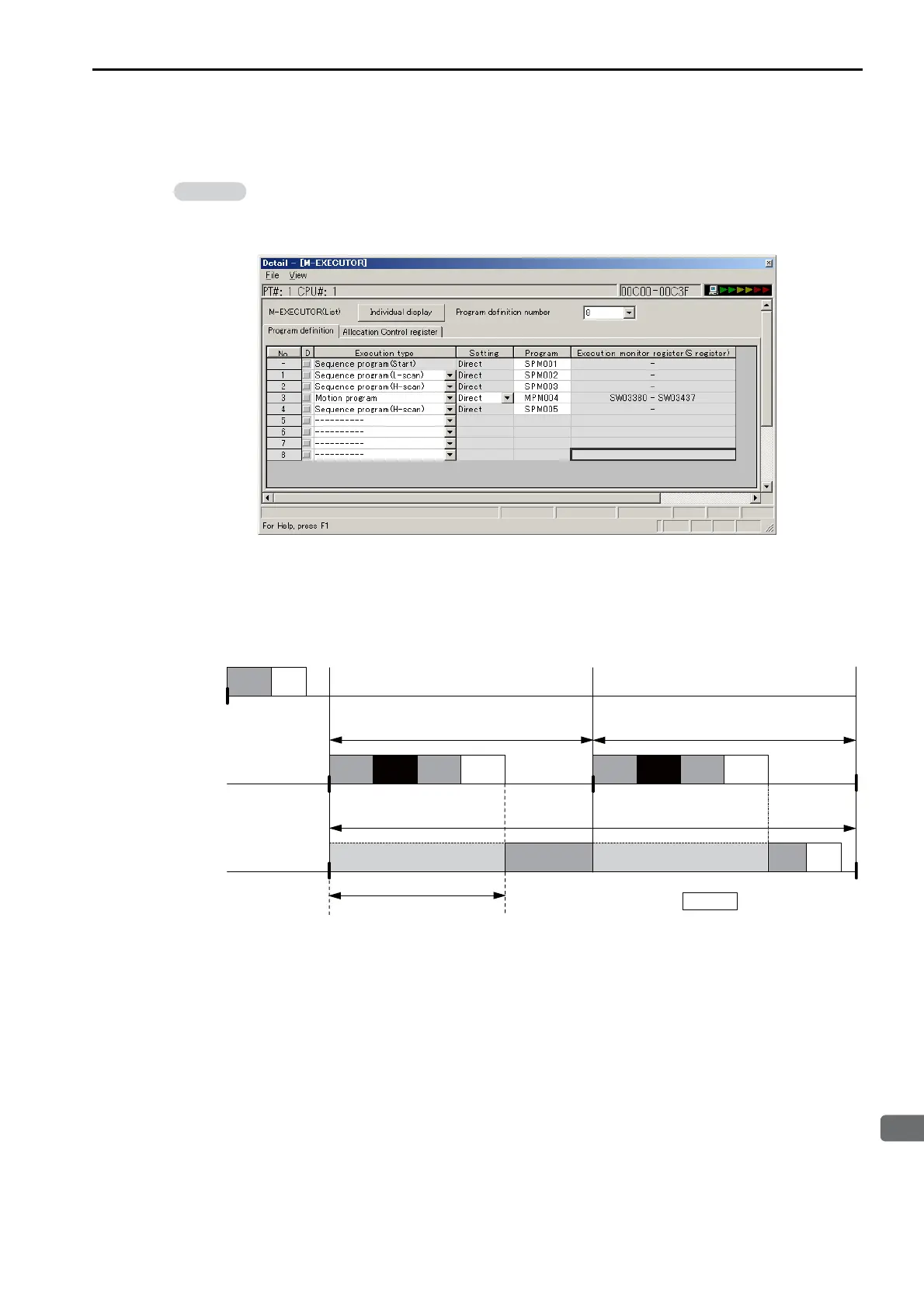 This section describes the execution timing of programs in the above example.