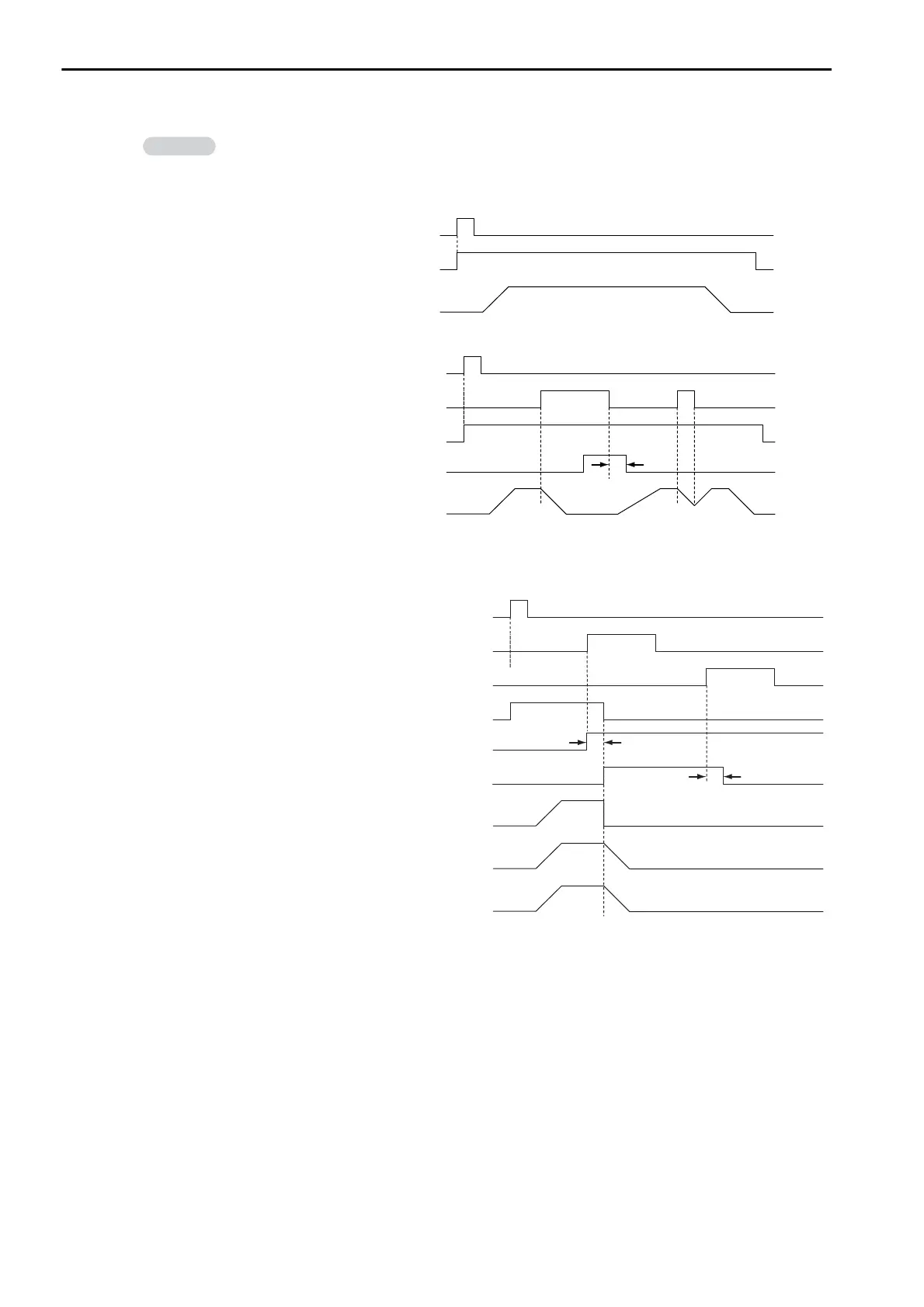 Timing chart examples for axis operations and status flags after a control signal is input are pro-