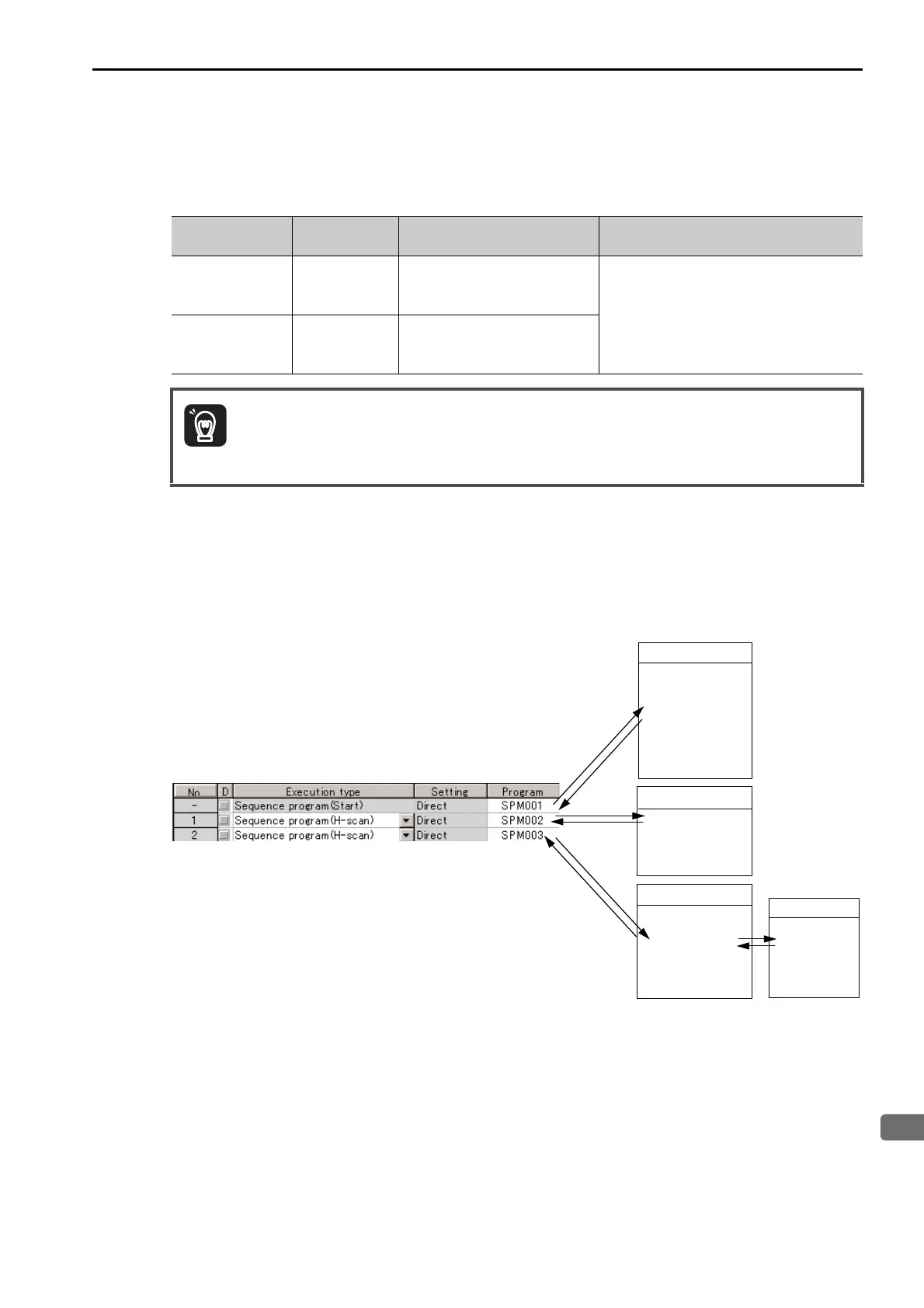 If the execution type is set to an H-scan sequence program or L-scan sequence program, then the program