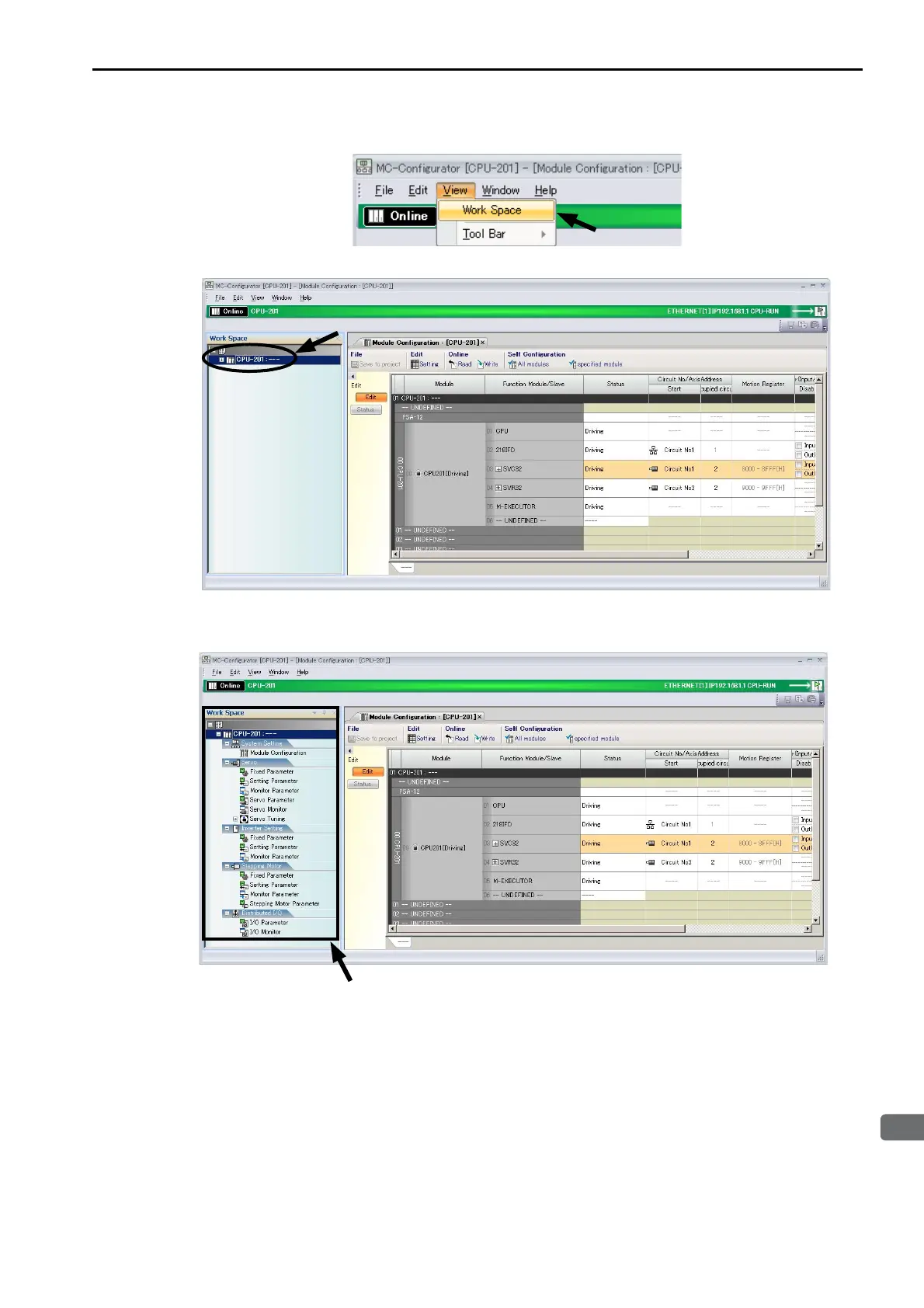 The Work Space Pane is displayed on the left side of the MC-Configurator Window.
