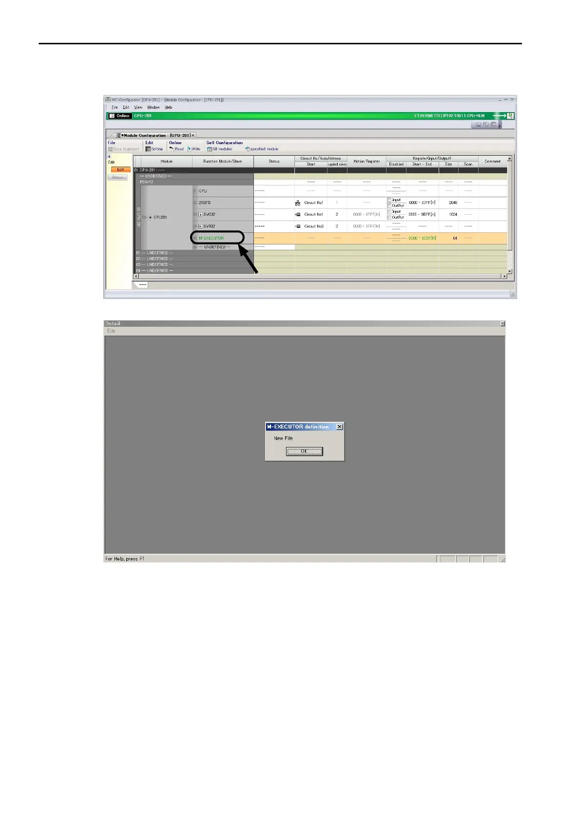 The M-EXECUTOR Definition Dialog Box will be displayed.