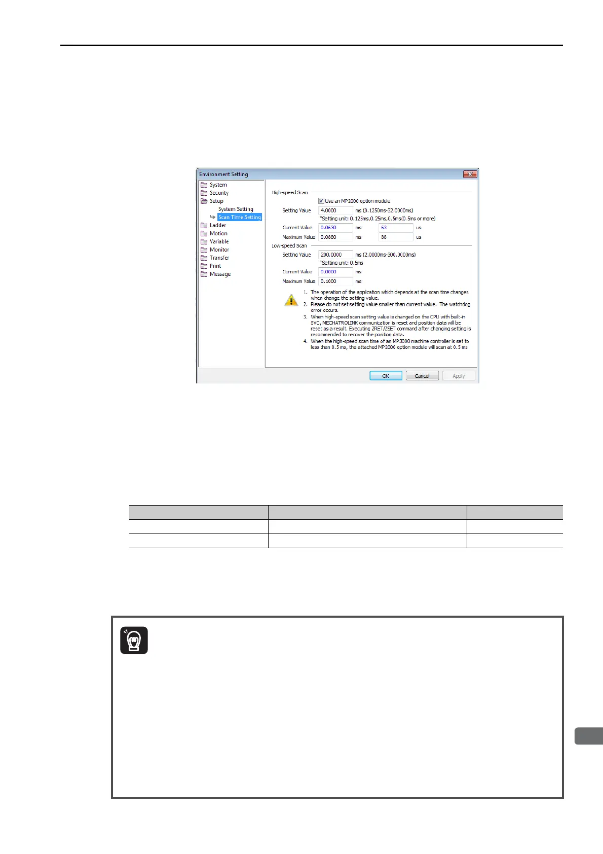 4. Enter the high-speed scan time in the Setting Value Box under High-speed Scan. Enter the low-
