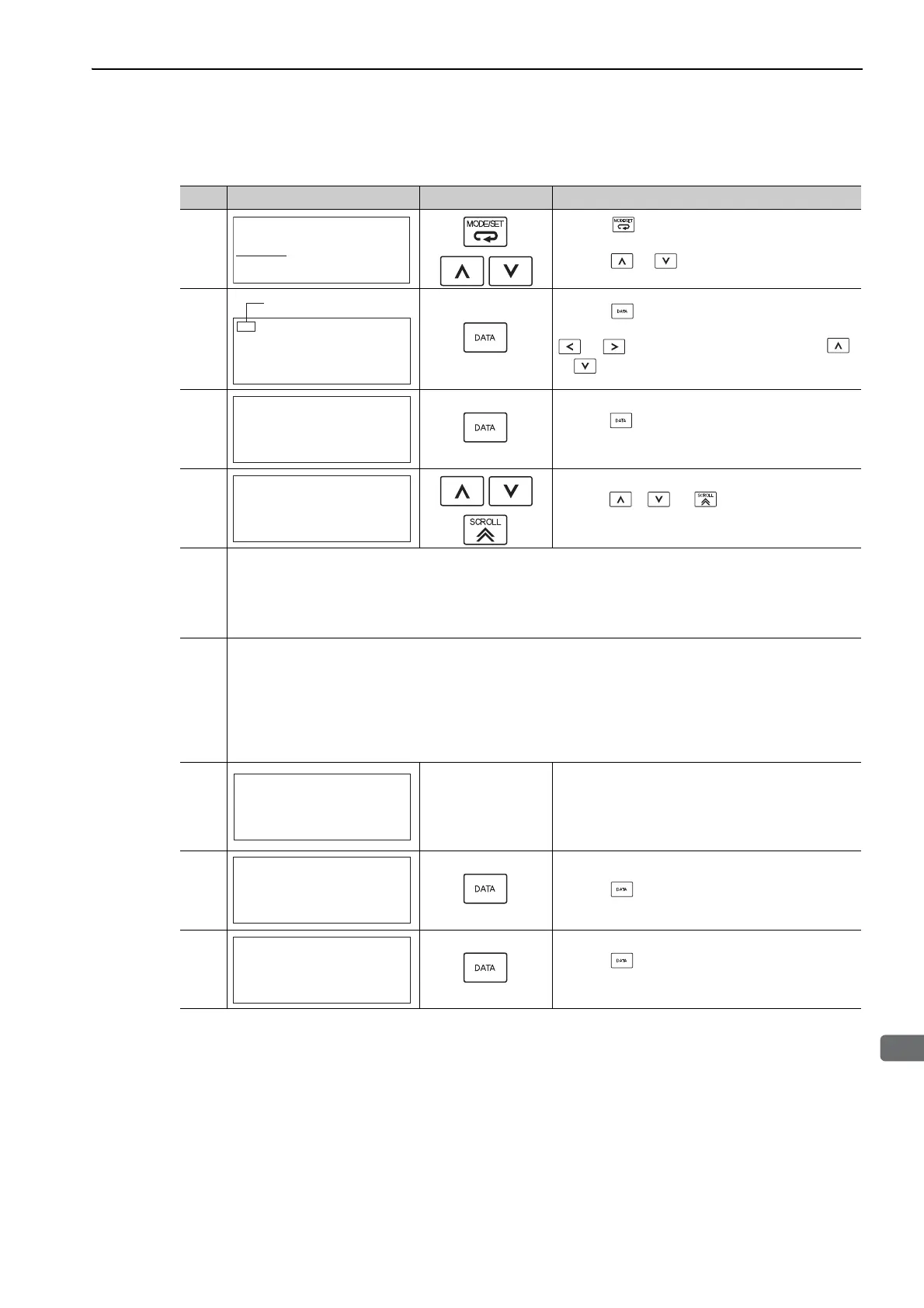 Step Display after Operation Keys Operation