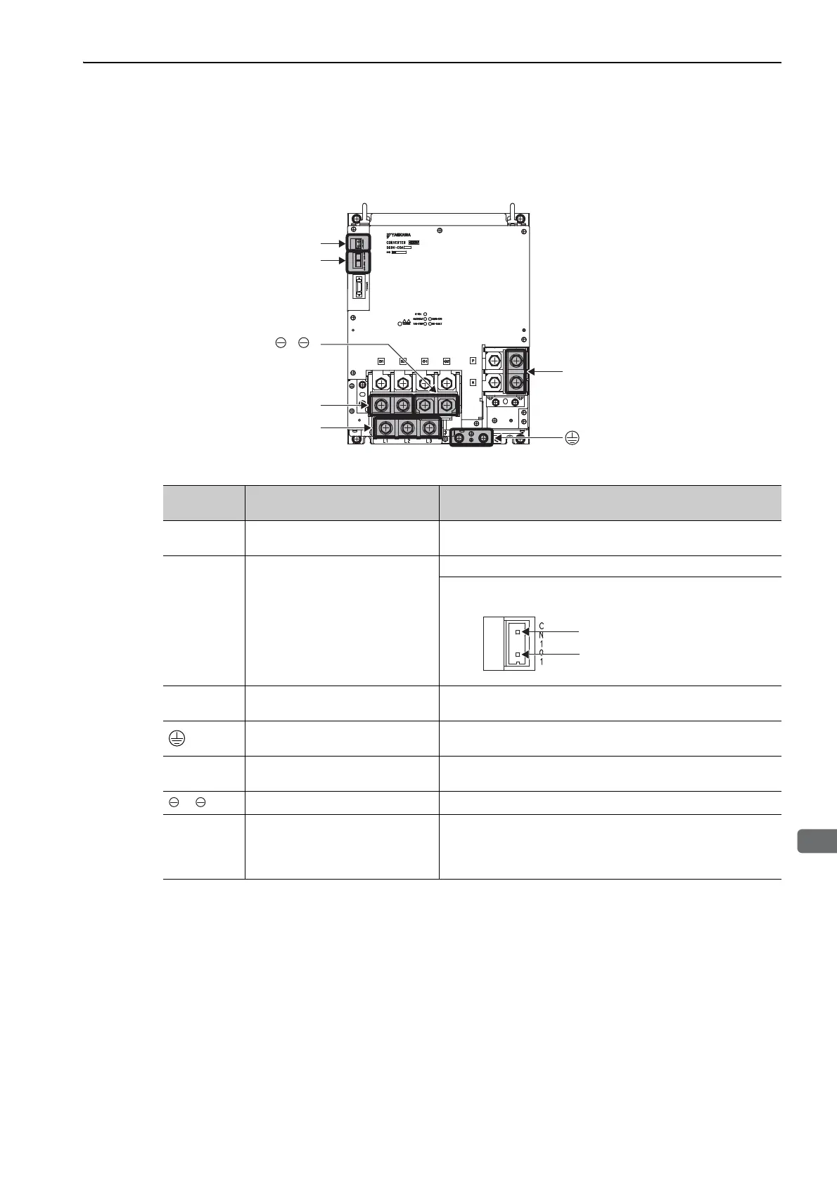 DC reactor connection terminals Remove the short bar before you connect a DC reactor.