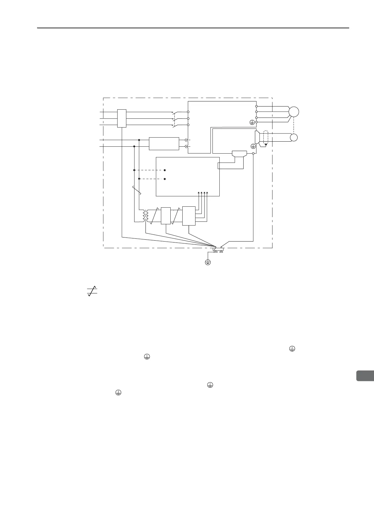 If the servomotor is grounded via the machine, a switching noise current will flow from the main circuit of the