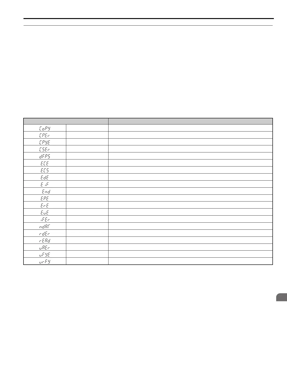 error occurs, a code appears on the operator to indicate the error. Note that errors related to the Copy function do not
