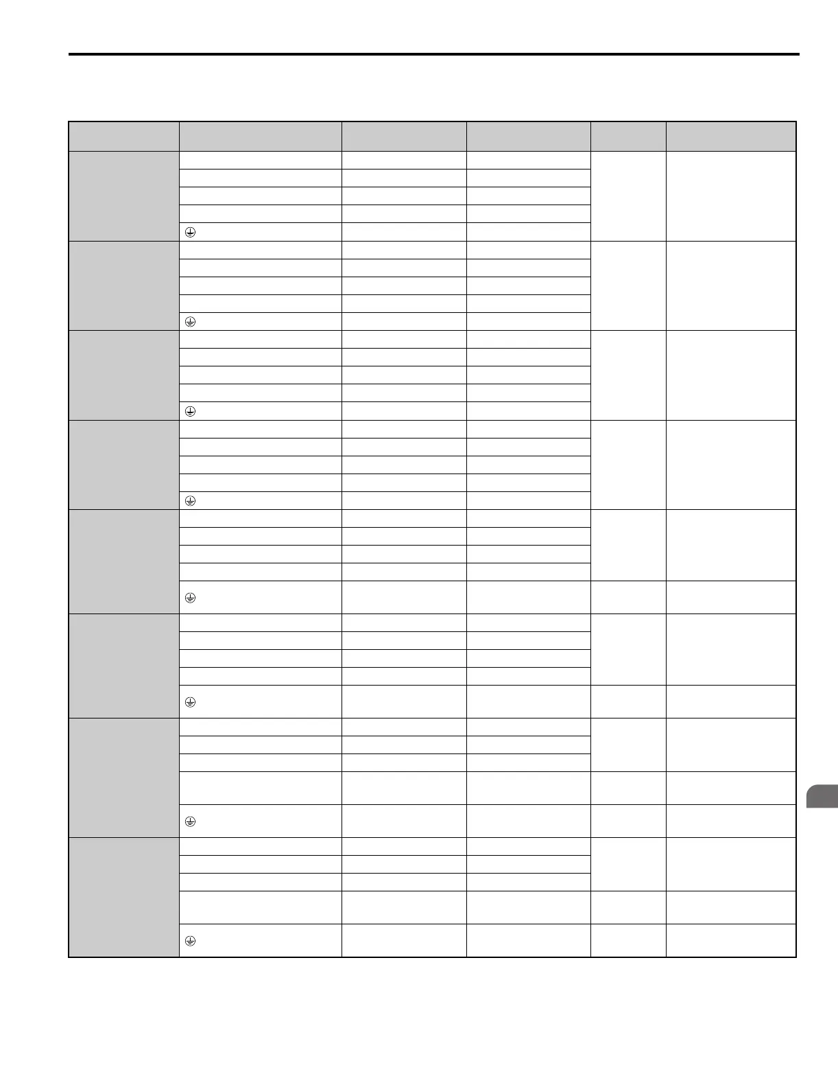 Table 10 Wire Gauge and Torque Specifications (Three-Phase 200 V Class)