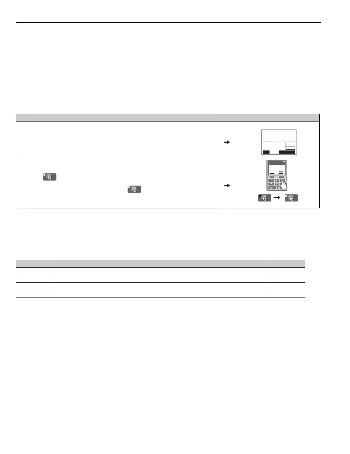 Switch the operation between LOCAL and REMOTE using the LO/RE key on the digital operator or via a digital input.
