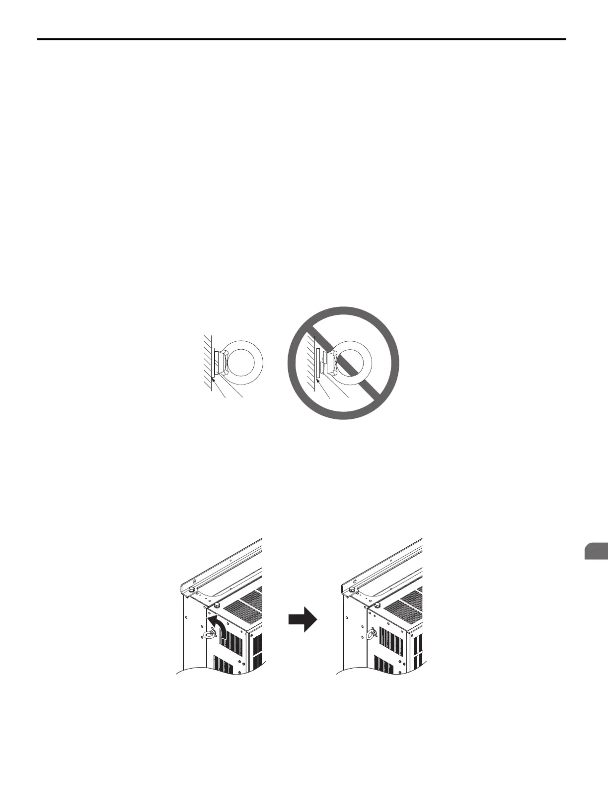 When vertical suspension of the drive is required in an enclosure panel, the orientation of the eye bolts for these drive