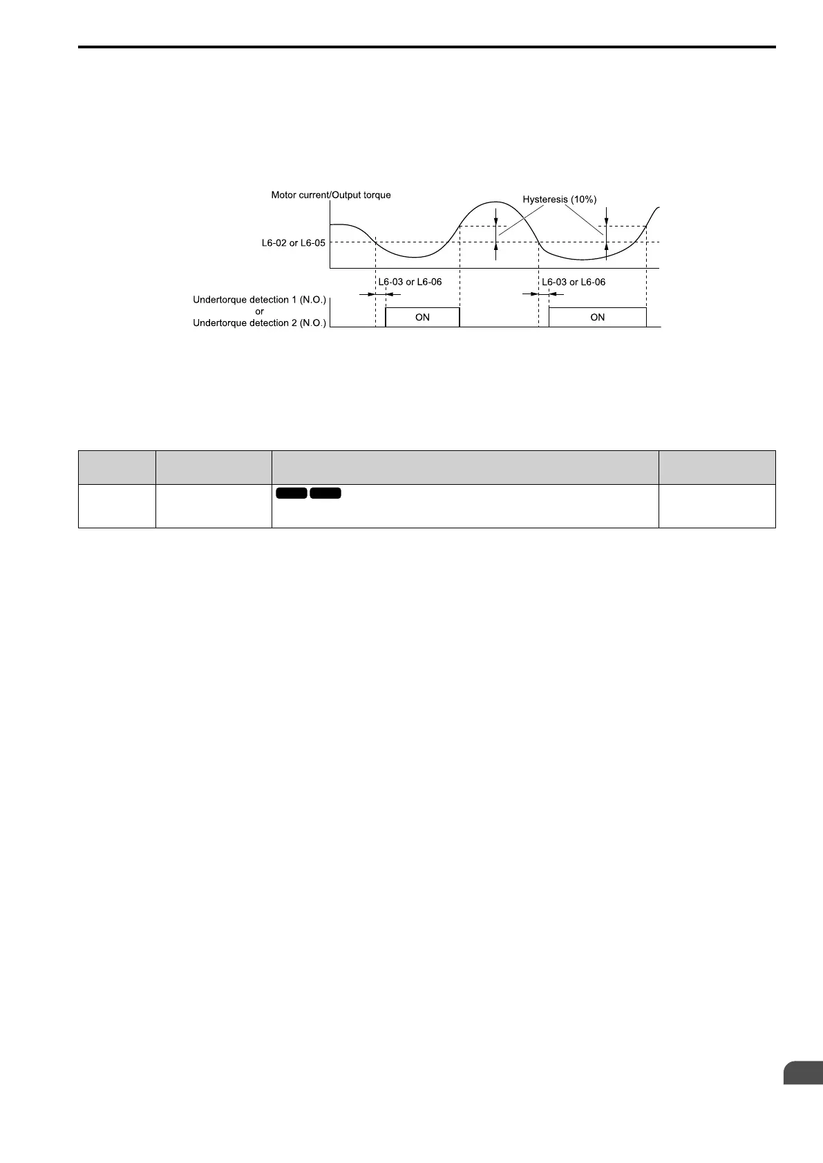 torque is less than or equal to the detection level set in L6-02 for the time set in L6-03. Parameter L6-01 sets the