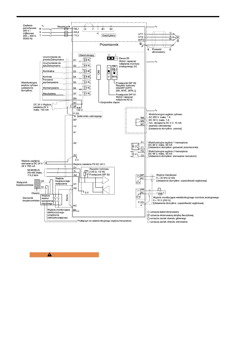 +1, +2, B1 i B2. Do podłączania urządzeń opcjonalnych do przemienników klasy jednofazowej 200 V należy użyć