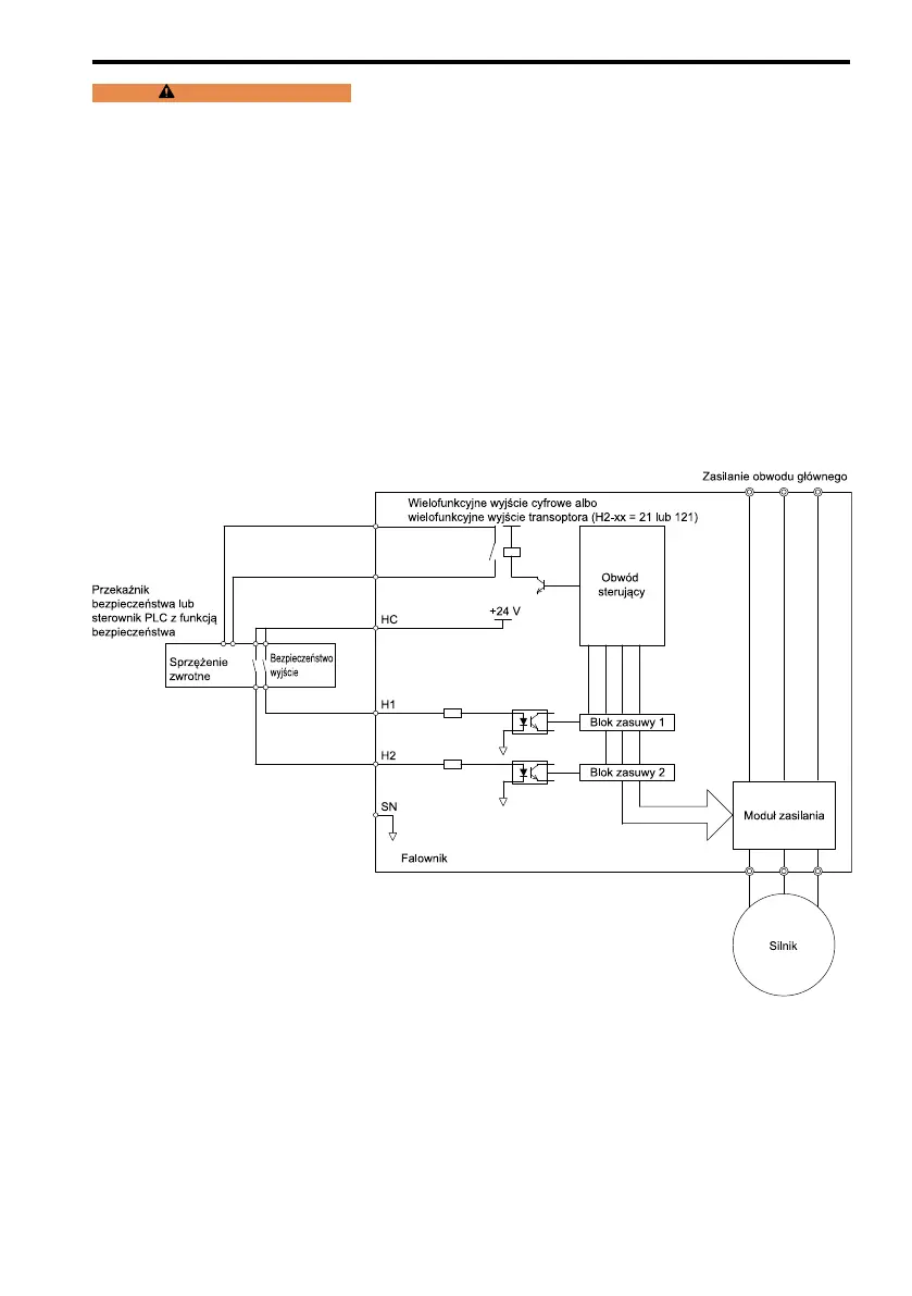 bezpiecznego wyłączenia lub do stwierdzenia usterki wejść bezpiecznego wyłączenia. Wyjście monitorujące nie