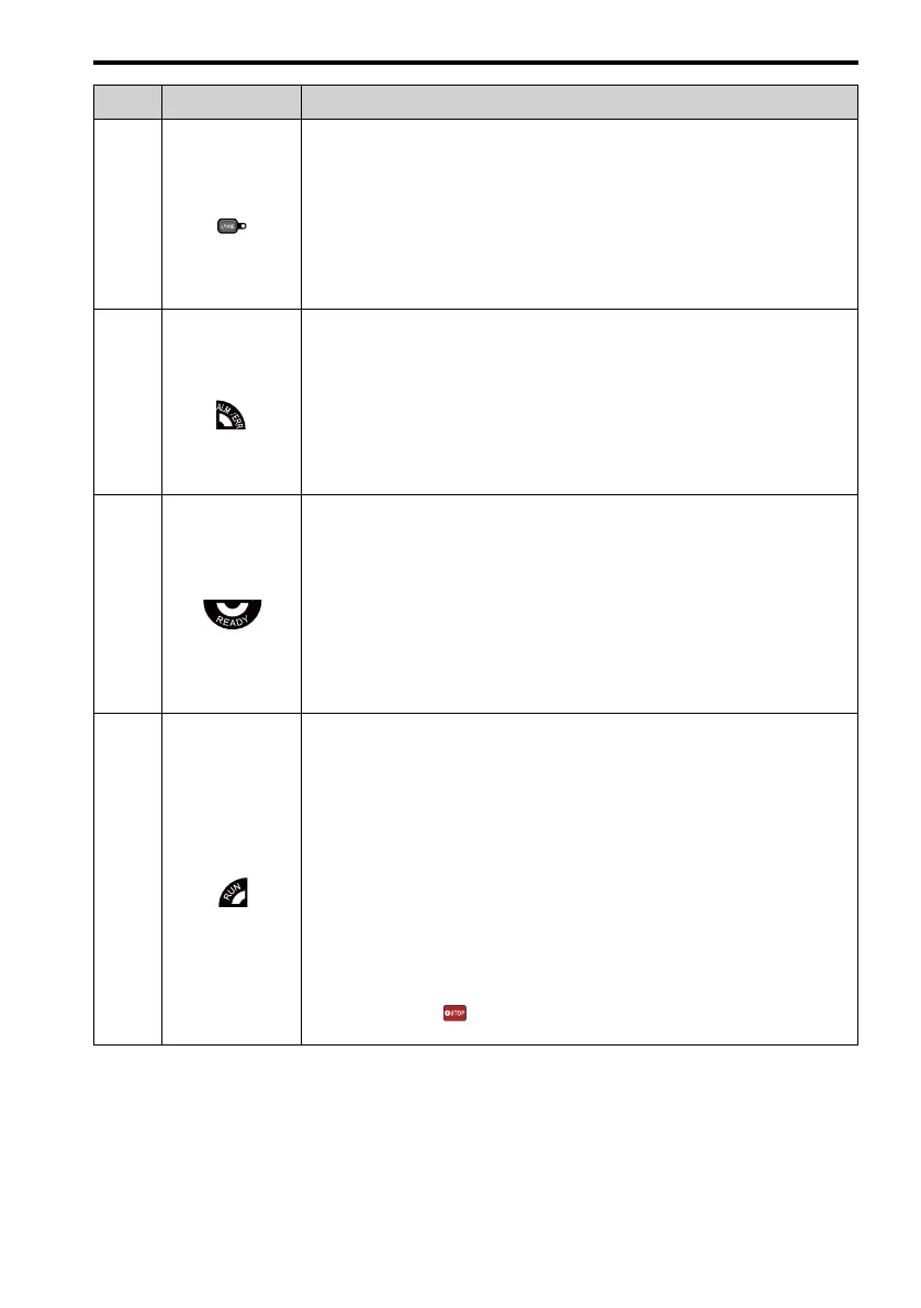 Leuchtet: Der Frequenzumrichter ist in Betrieb oder ist betriebsbereit.