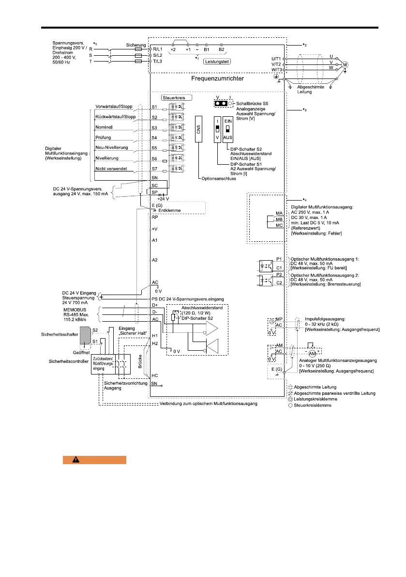 nungsversorgung mit diesen Klemmen. Fehlerhafte Verdrahtung kann zu Schäden am Frequenzumrichter
