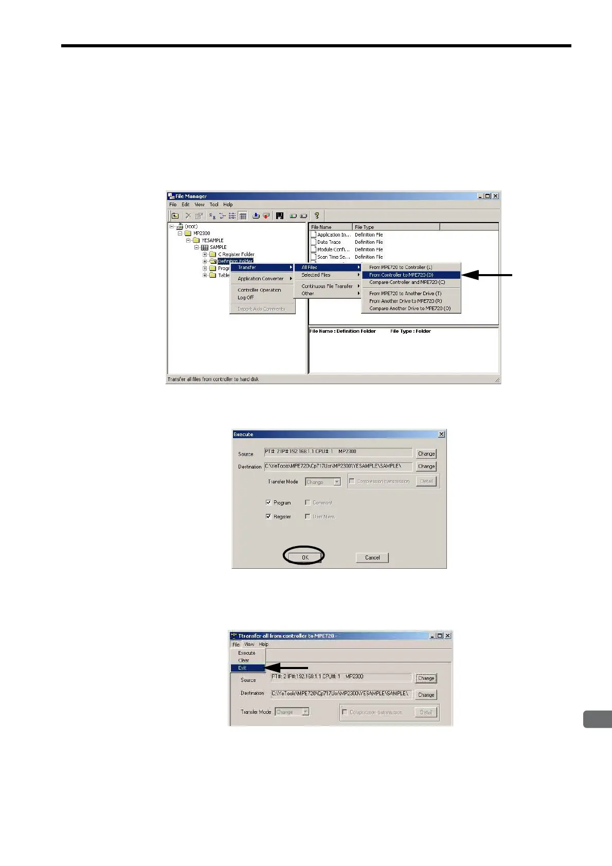 Right-click the Controller Folder in which the sample programs have been saved, and select Transfer