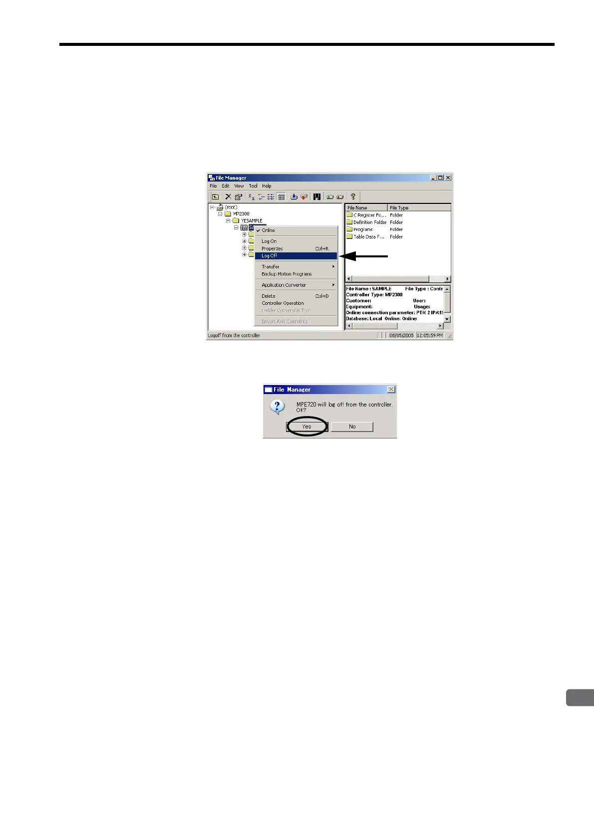 Right-click on the Controller Folder where sample programs are saved and select Log Off from the