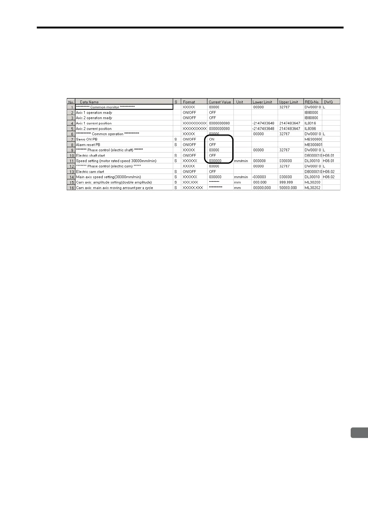 Change the Electric shaft start current value from ON to OFF when the check operation has been completed.