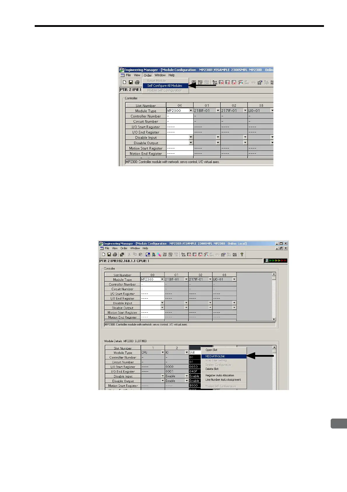 Select Order - Self Configure All Modules from the main menu to execute self-configuration.