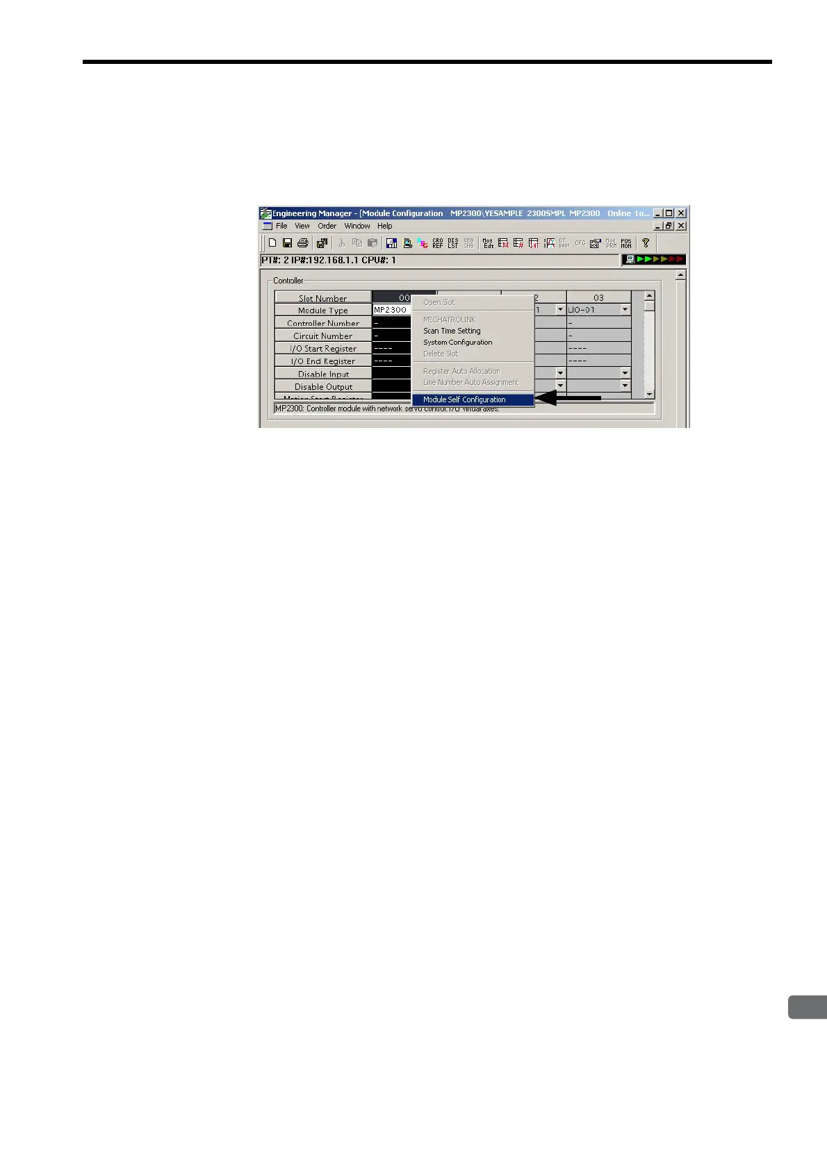 When MP2300 is selected as an individual module, executing Module Self Congifutation will configure all the