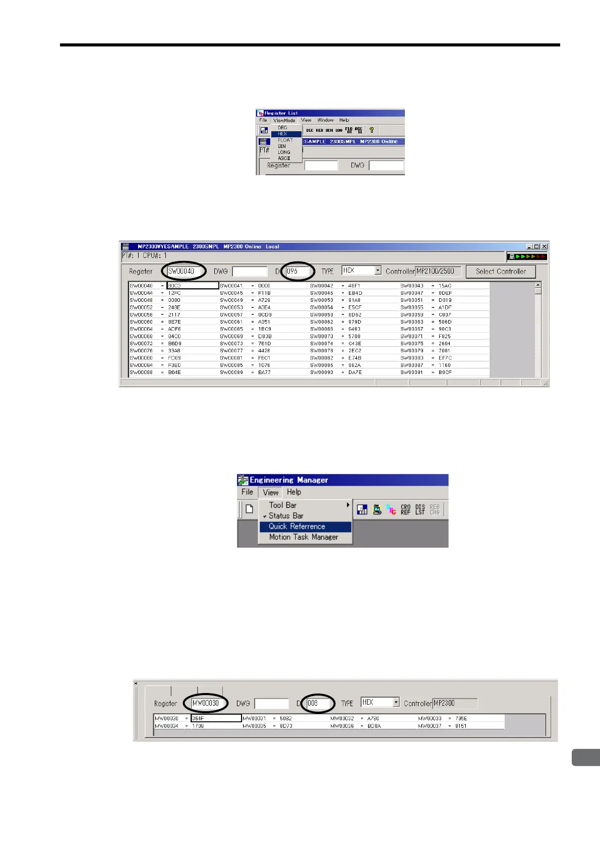 ( 3 ) Displaying a Register List with the Quick Reference (MPE720 Ver 5.