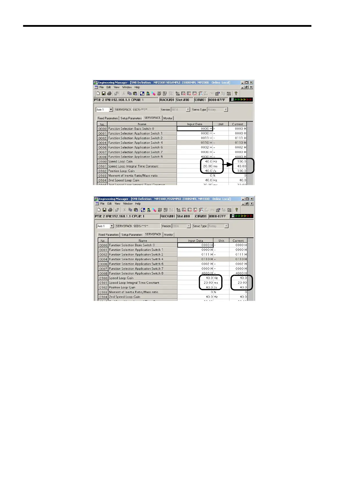 same as the values in Current Value on the SERVOPACK Tab Page.