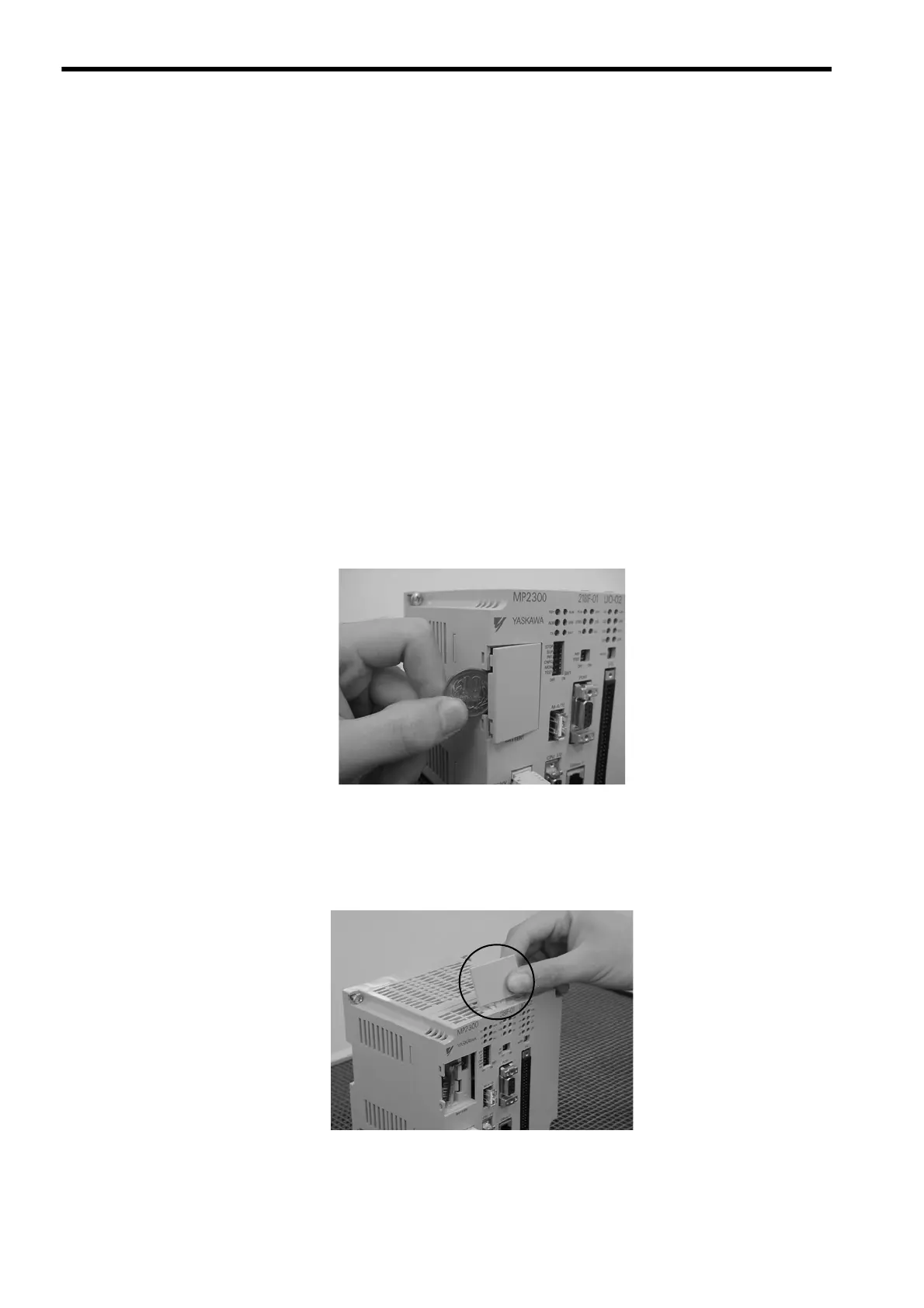 Turn OFF the power supply and remove all the cables connected to the MP2300. Next, remove the MP2300 from