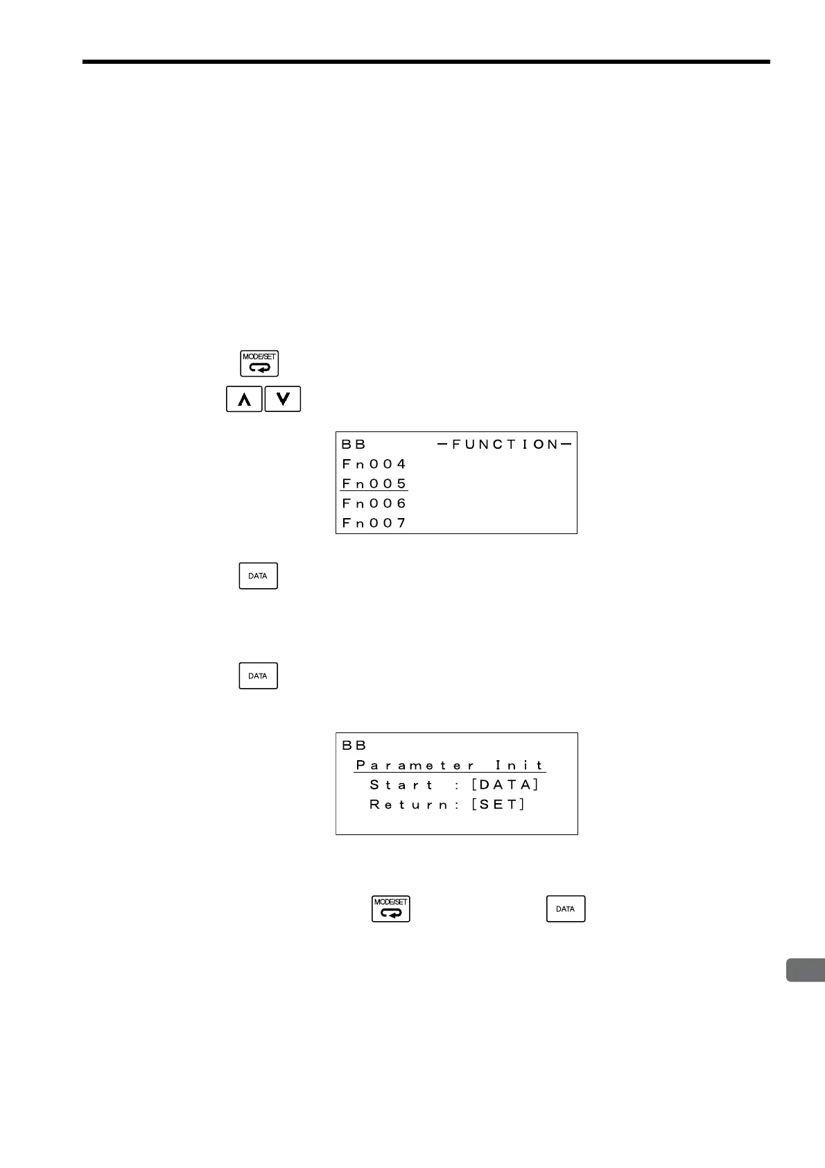 Press the Key to switch to the Fn005 parameter initialization execution display.