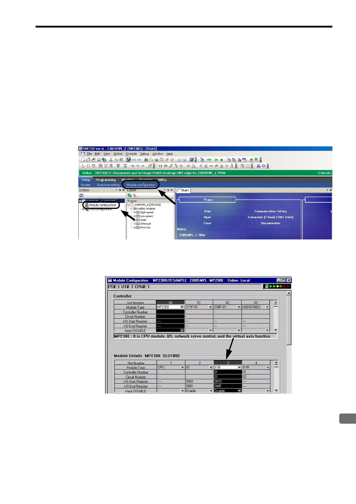 Select 00 in the Controller Area and double-click the 3 in the Module Details MP2300 SLOT
