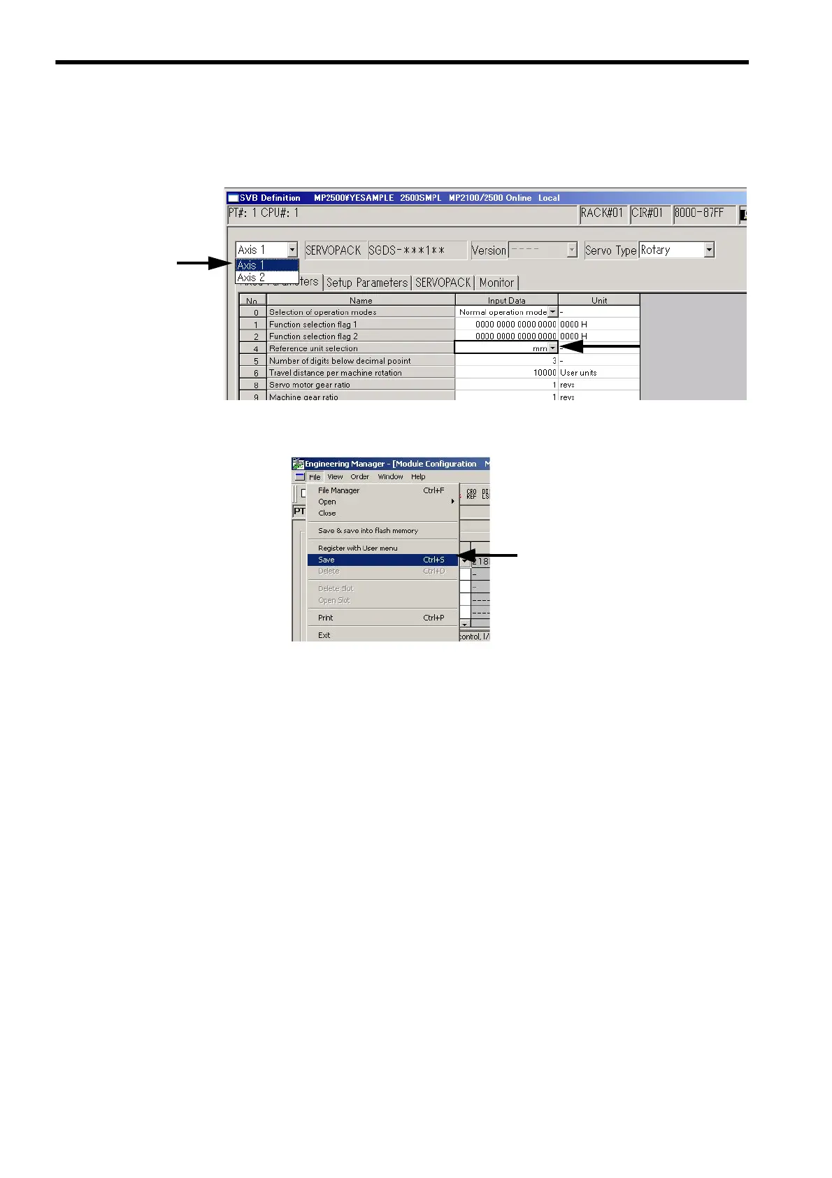 Select Axis 1 from the axis selection box at the top-left of the window and select mm under No. 4 Reference unit