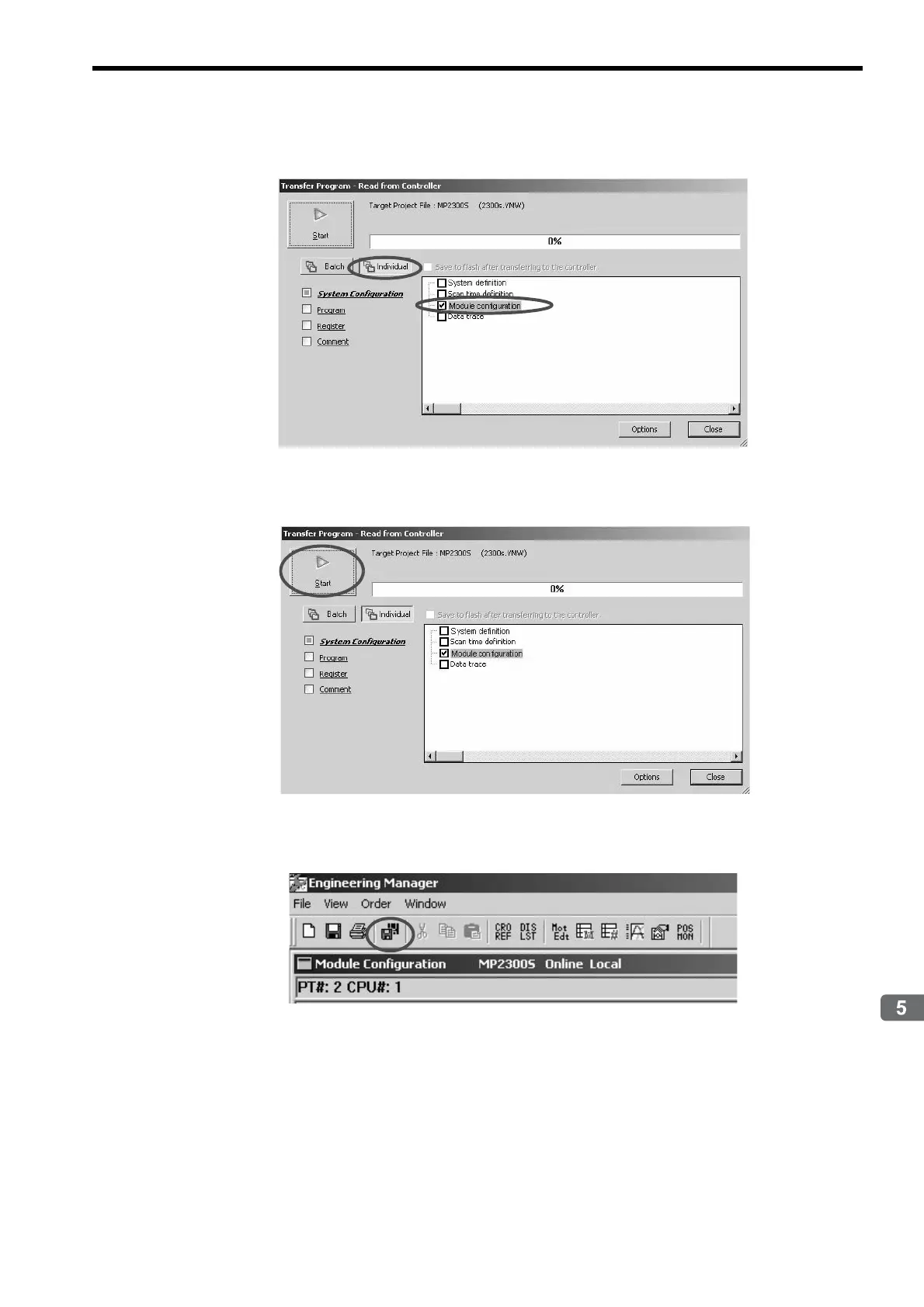 8. Click Start to read the module configuration definition from a controller.