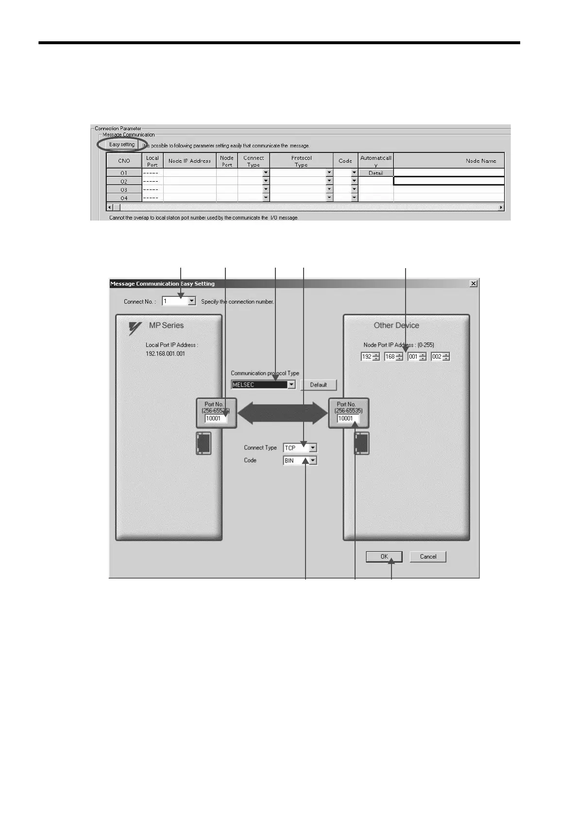 3. Click the Easy Setting Button in the Message Communication area of the connection parameter set-