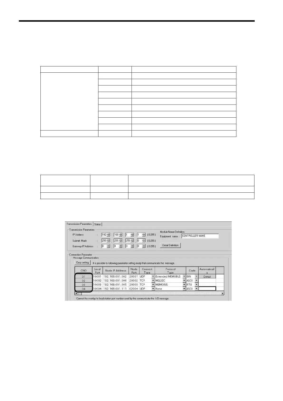 Note: When the communication device is Ethernet (218IF or 218IFA), set the connection number in accor-