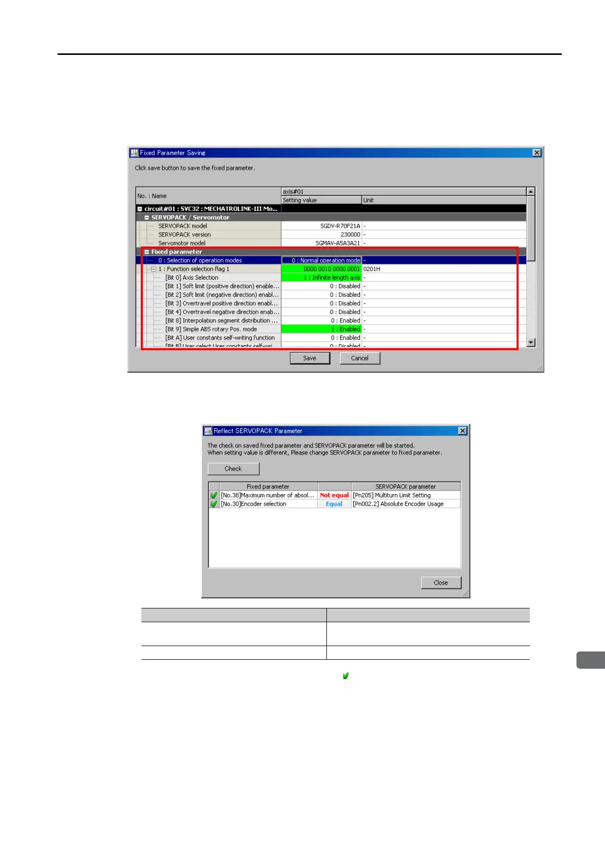 If the fixed parameter and the SERVOPACK parameter match: Equal