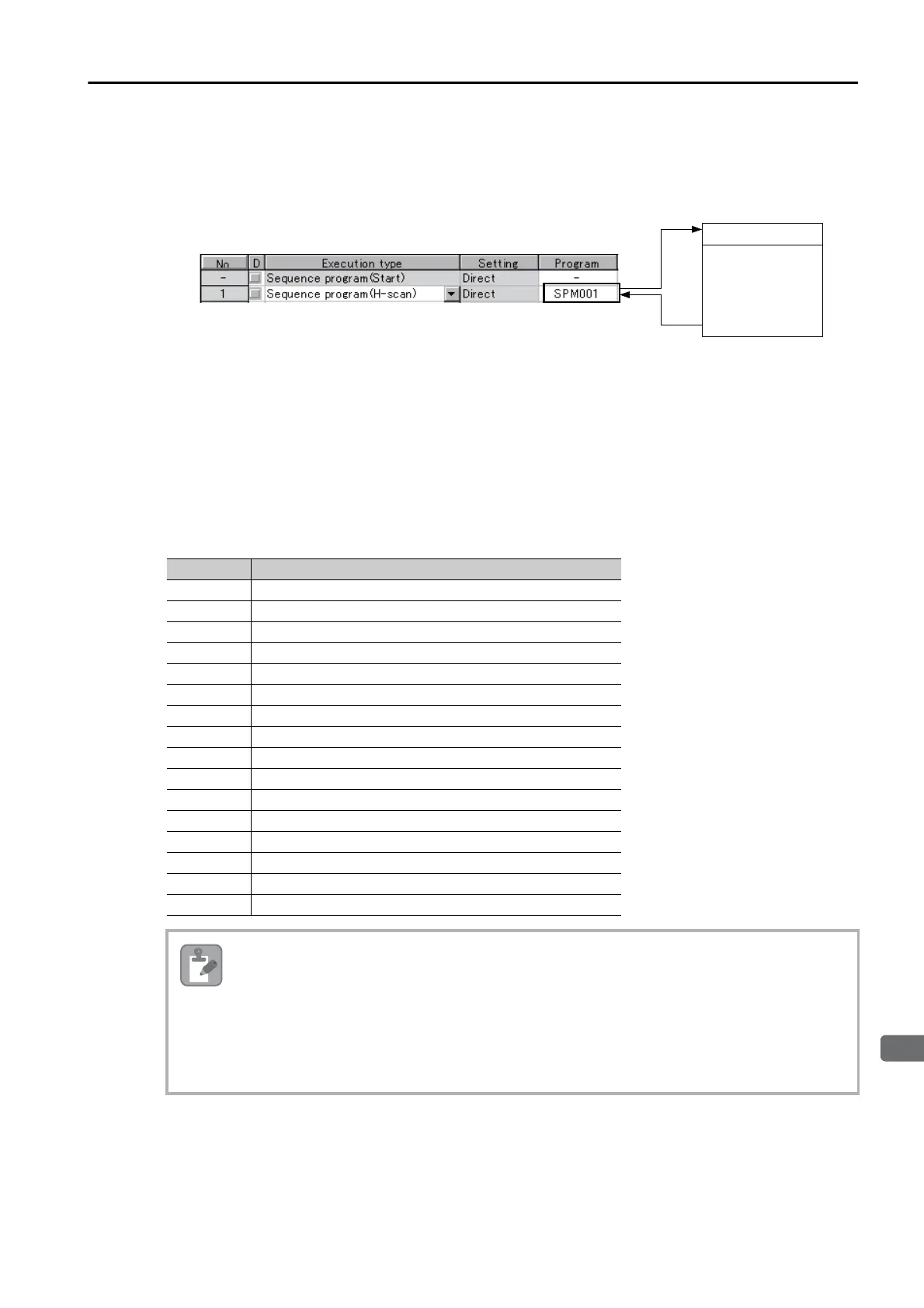 Specify the program number of the sequence program to execute (SPM).