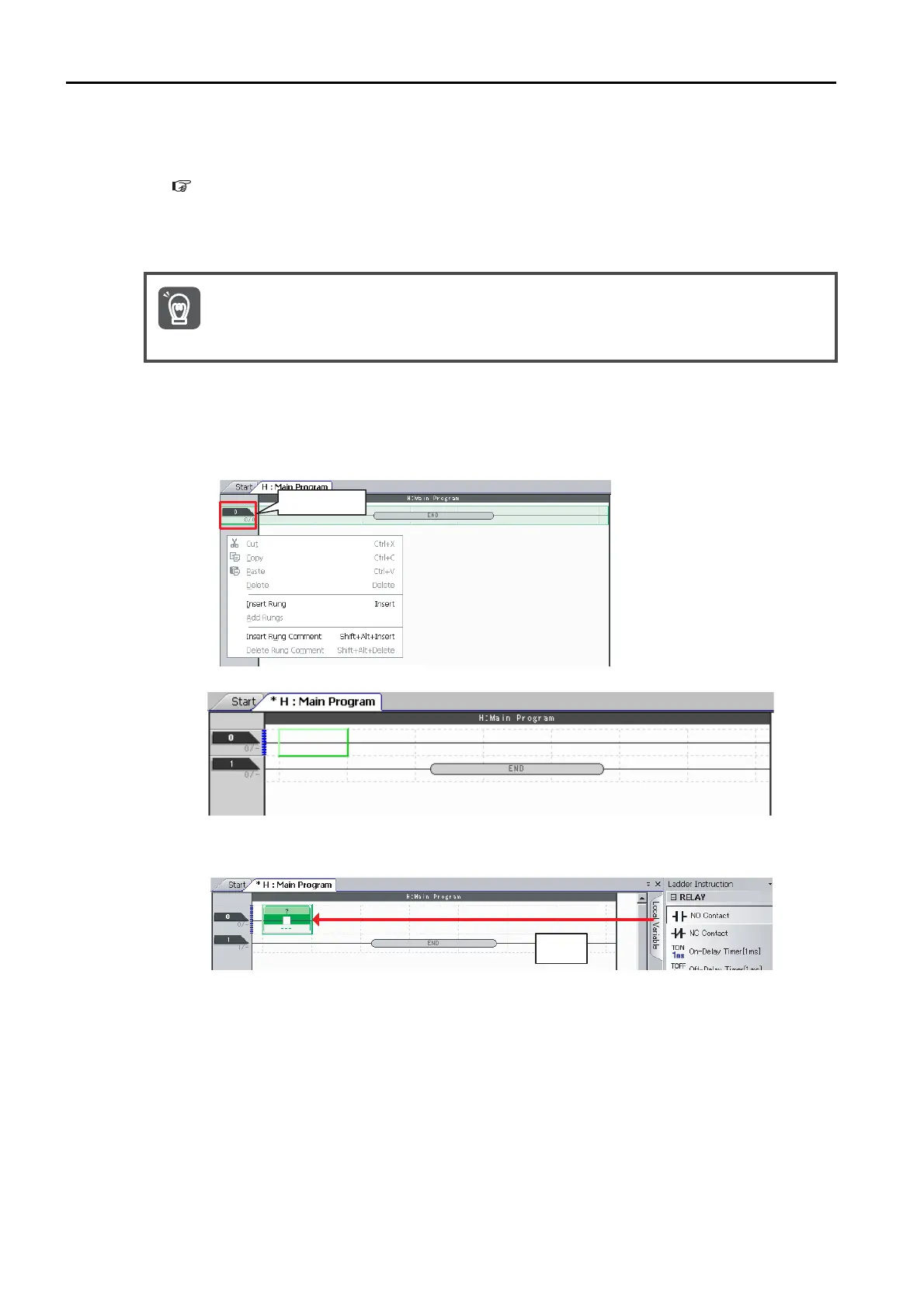 • Drag NO Contact under RELAY in the Task Pane to the rung.
