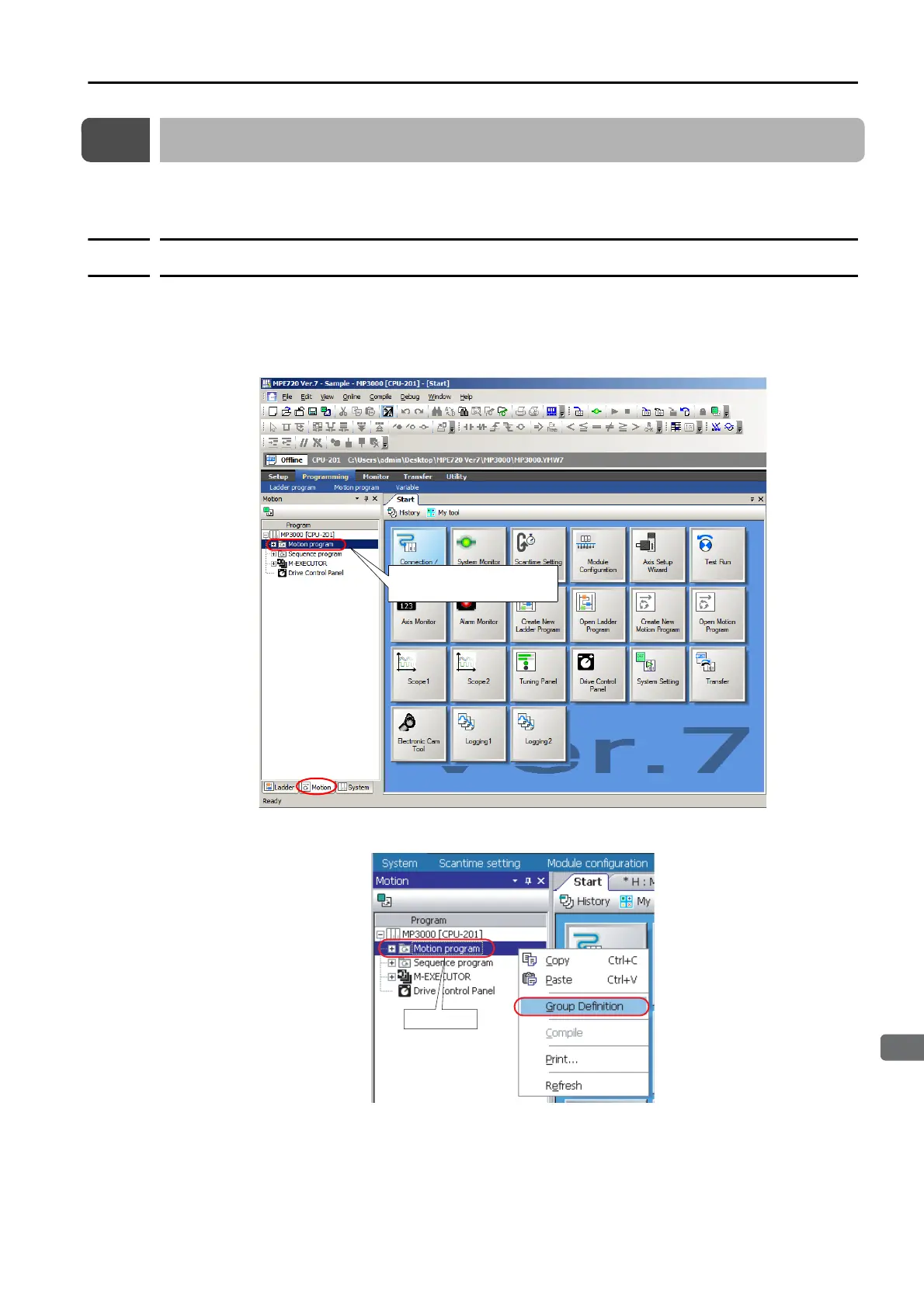 Right-click Motion program, and select Group Definition.