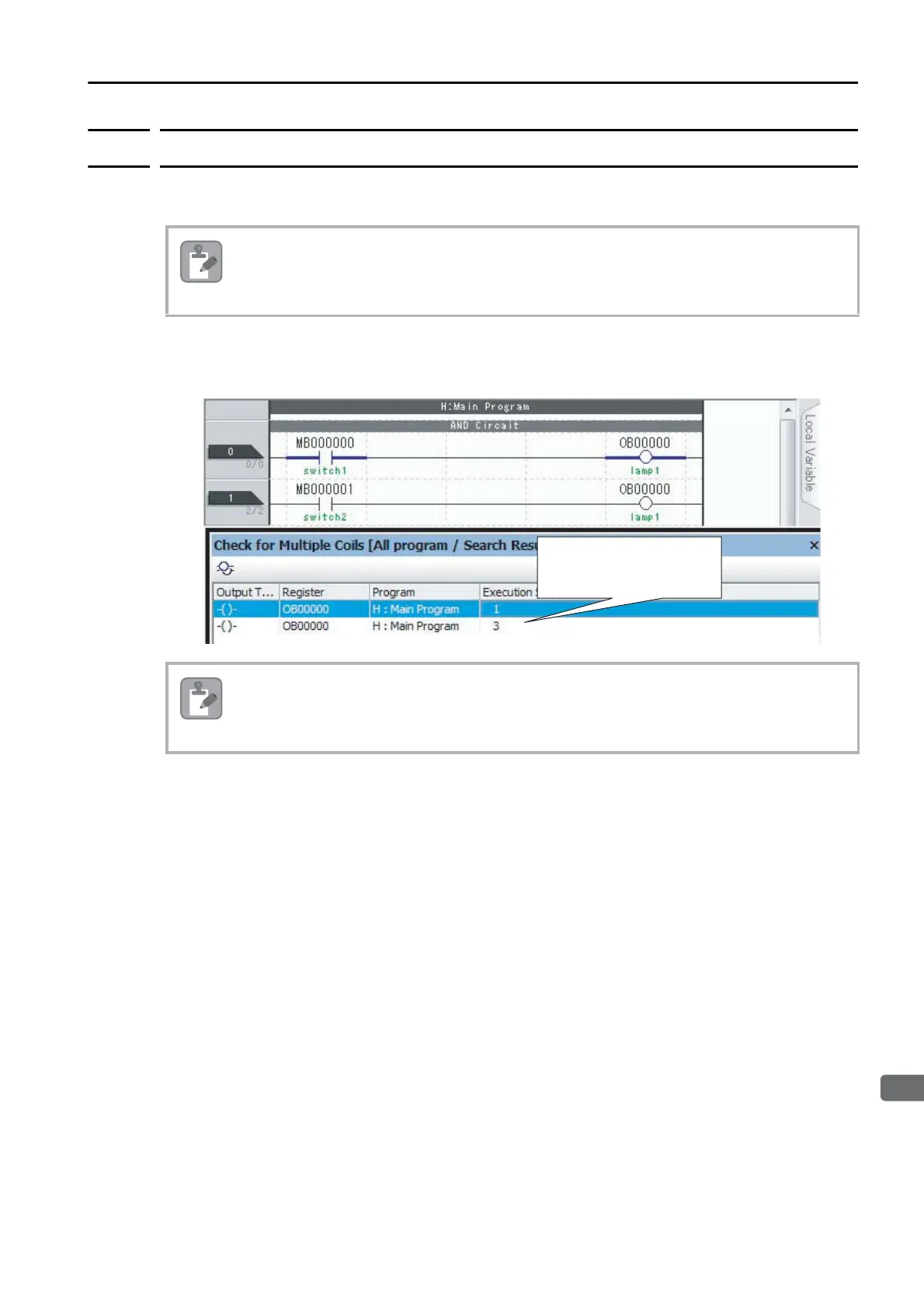 You can check for multiple coils (different coils that use the same register) in the entire ladder