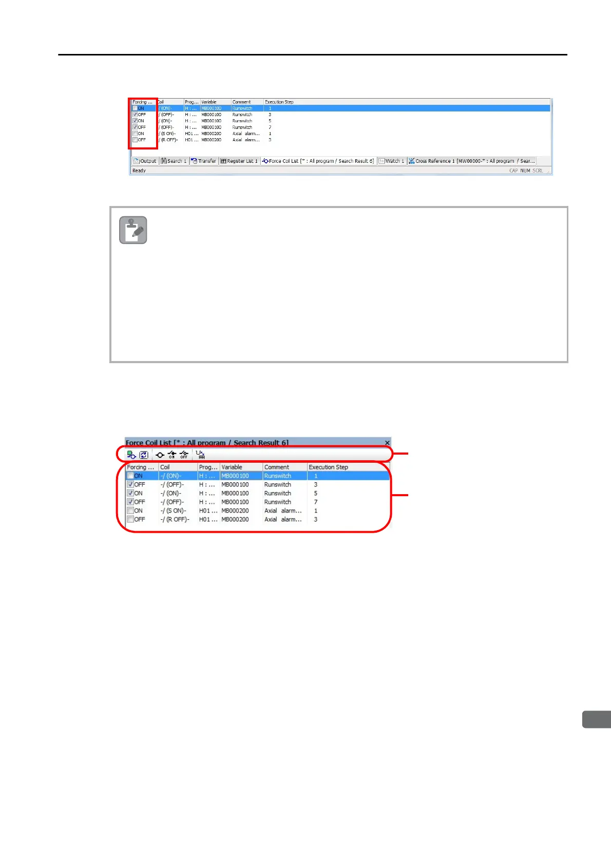 Select the check boxes for the coils to force ON or OFF.