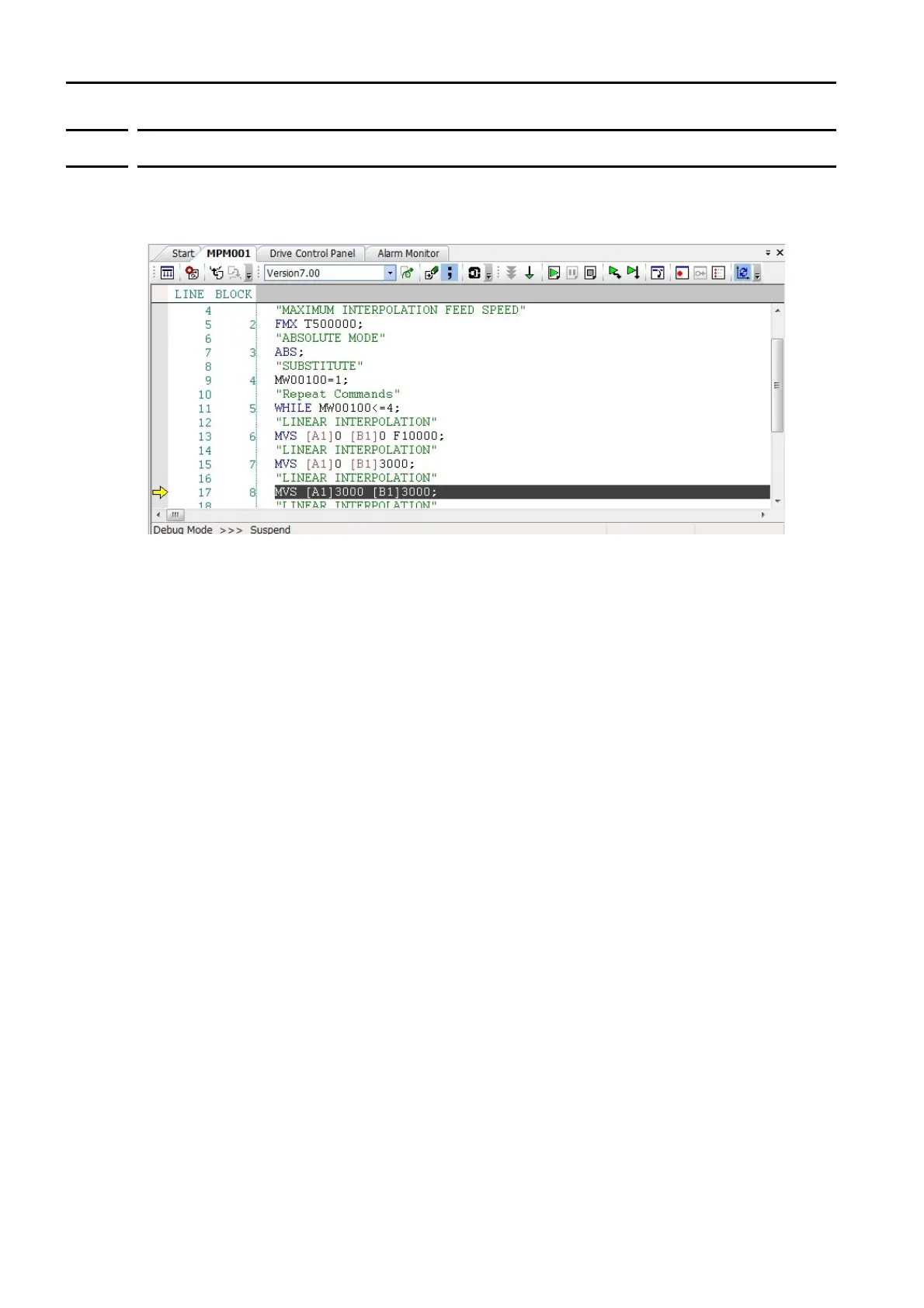 You can use the Drive Control Panel to monitor the execution and debug the program.