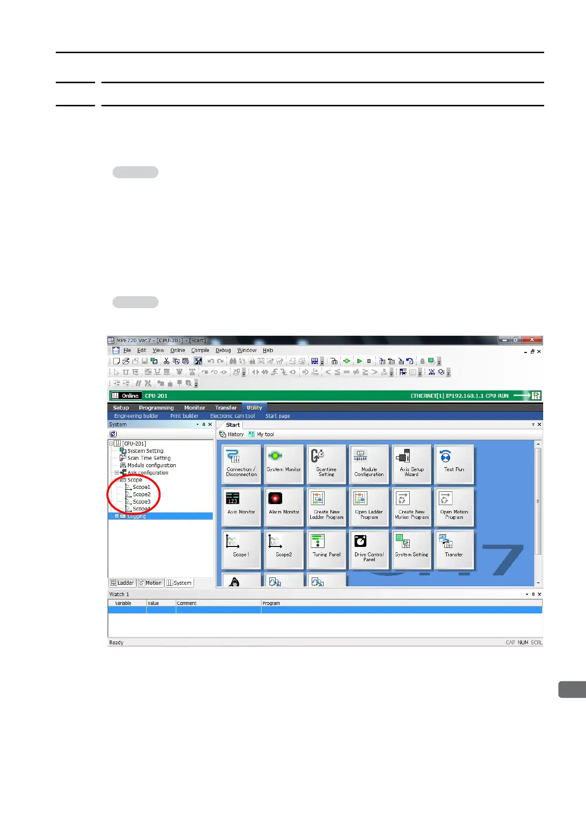 Double-click Scope 1, Scope 2, Scope 3, or Scope 4 in the System Pane of MPE720 version
